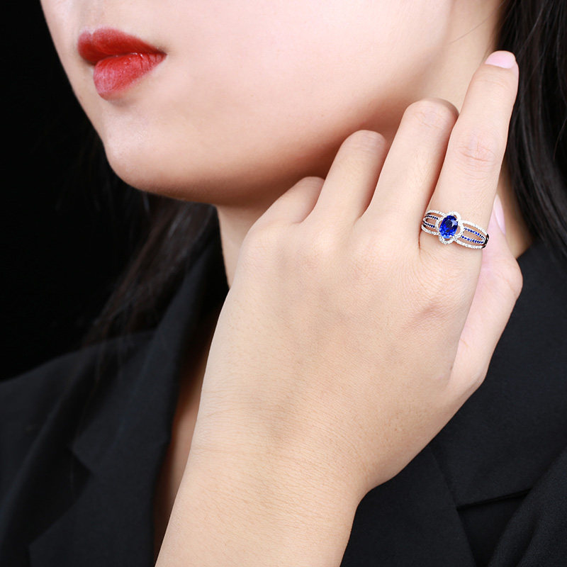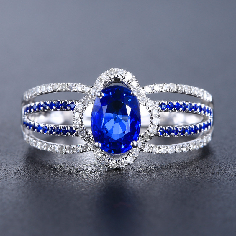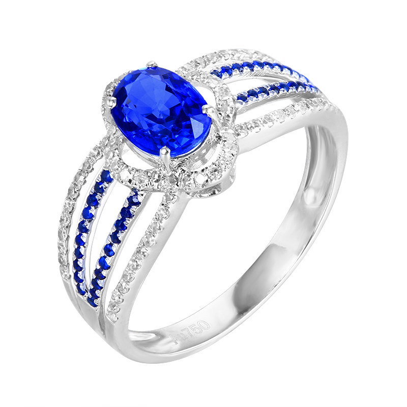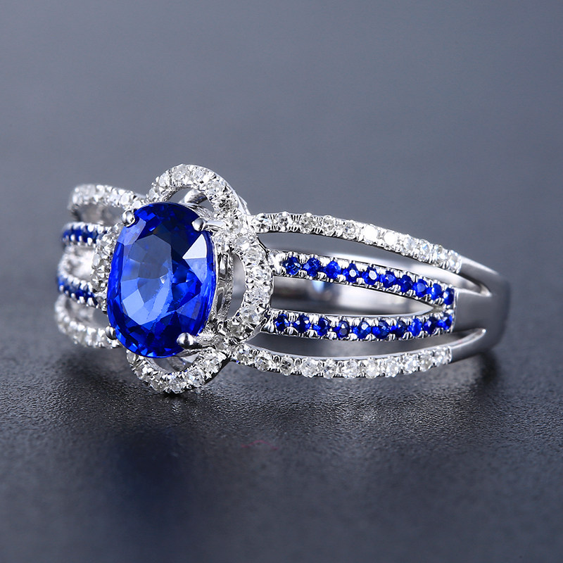 Ювелирное украшение, королевское сапфировое кольцо с камнем, бриллиантовая инкрустация камня, 1.287 карат, золото 750 пробы, (в наличии на складе)