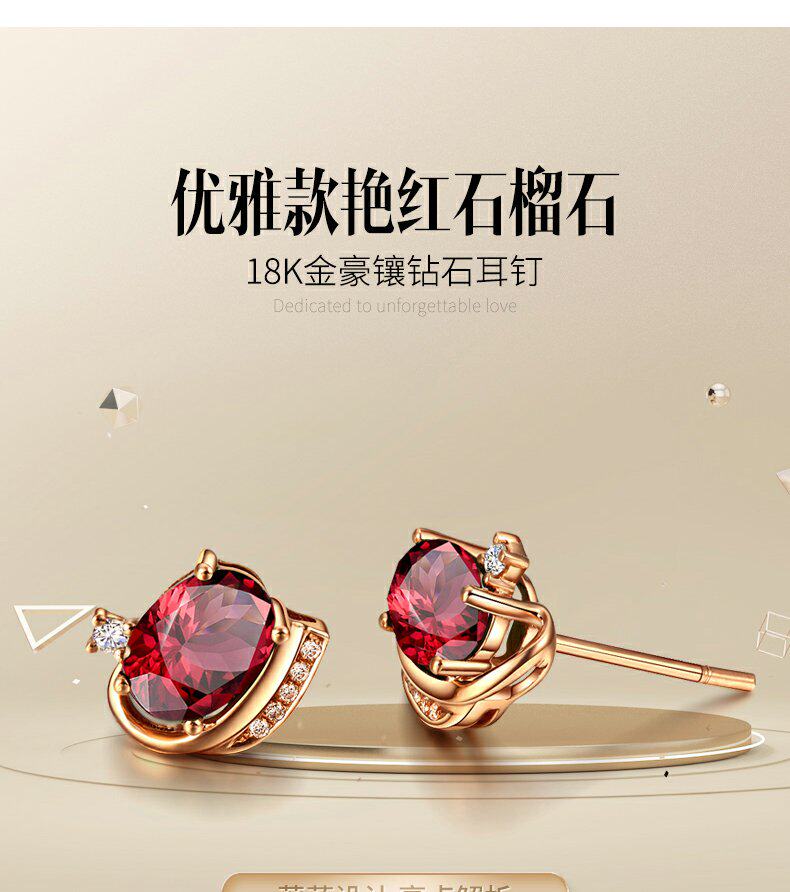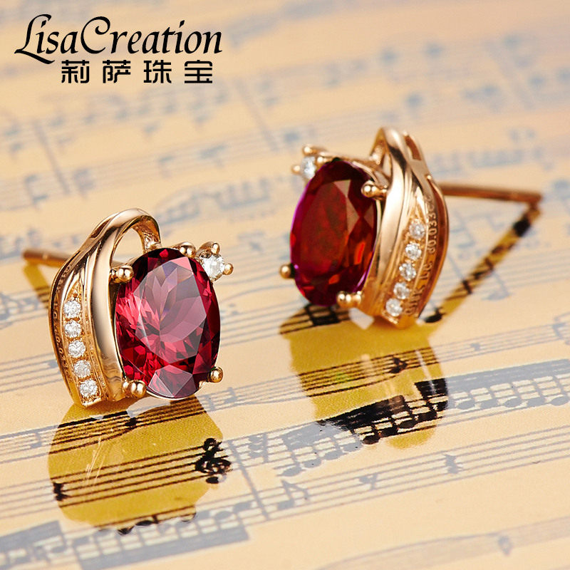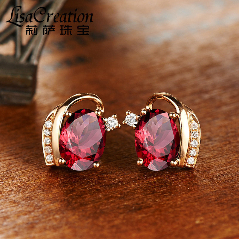 Ювелирное украшение, бриллиантовые натуральные серьги из граната, 2.84 карат, золото 750 пробы, с драгоценным камнем