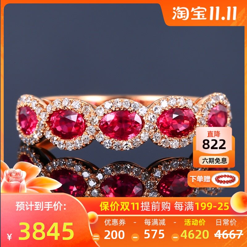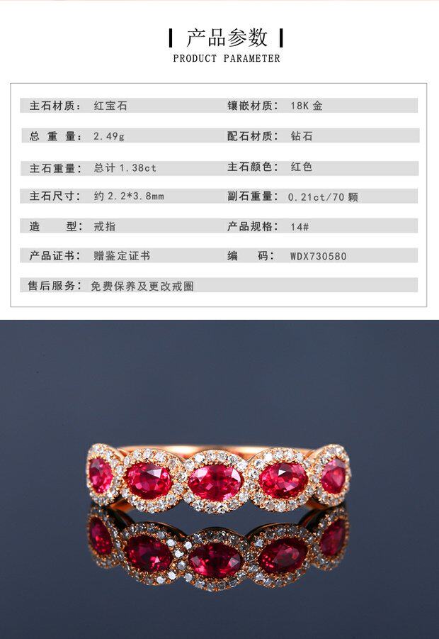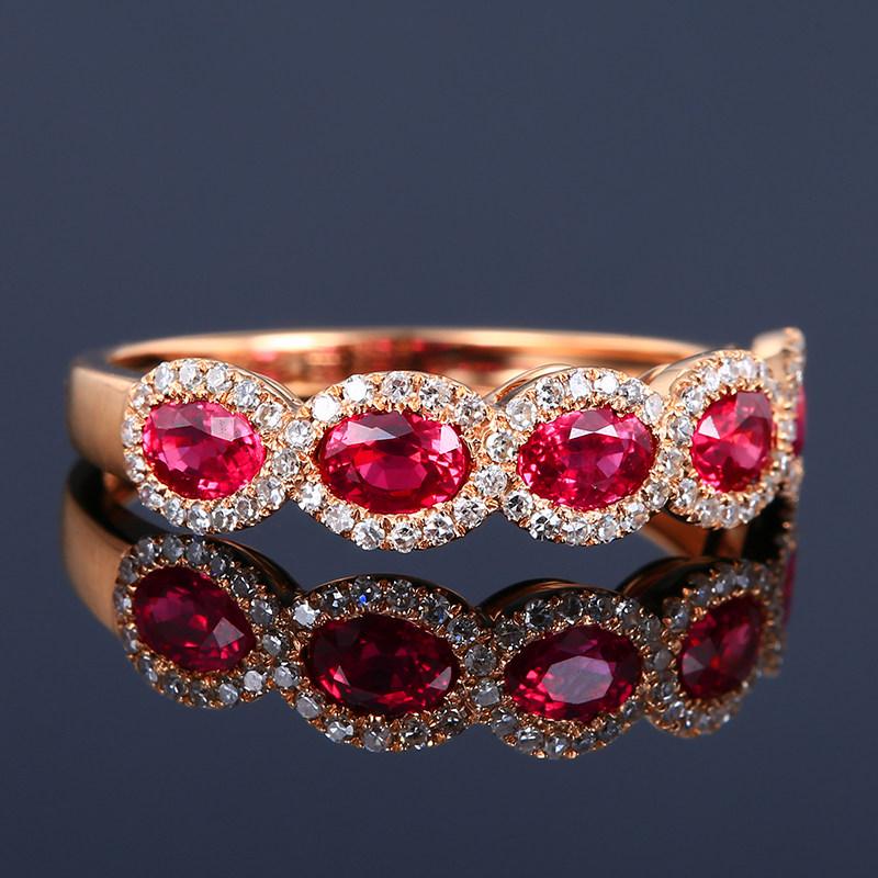 Рубиновое бриллиантовое кольцо с камнем, делается под заказ, 1.38 карат, женский стиль, золото 18 карат