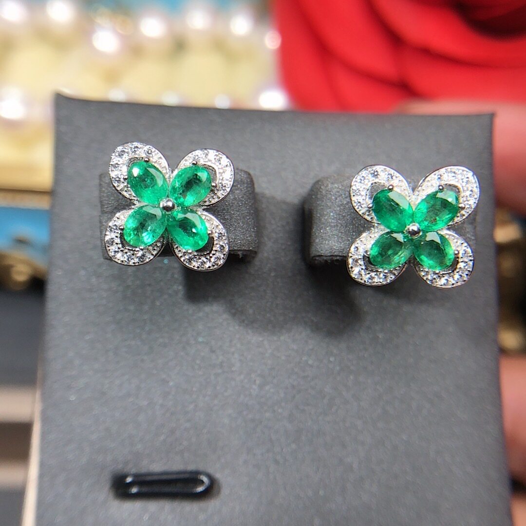 Натуральное ювелирное украшение, серьги изумруд, инкрустация камня, 4mm, серебро 925 пробы