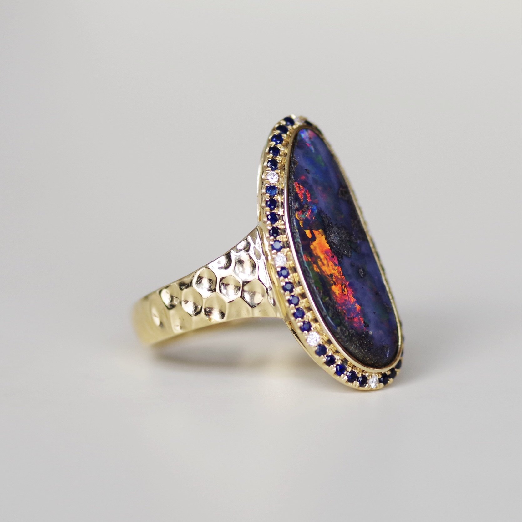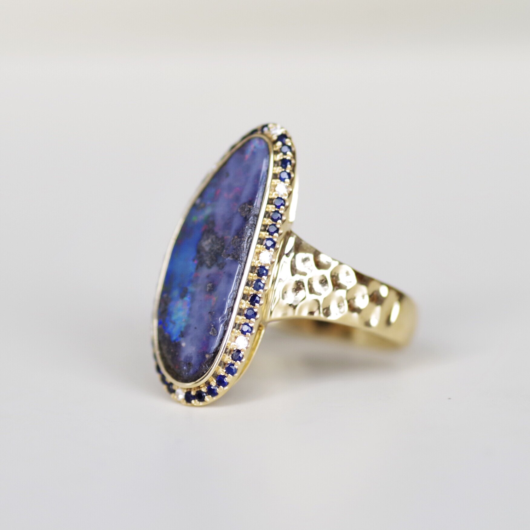 Натуральное бриллиантовое сапфировое золотое кольцо, 18 карат