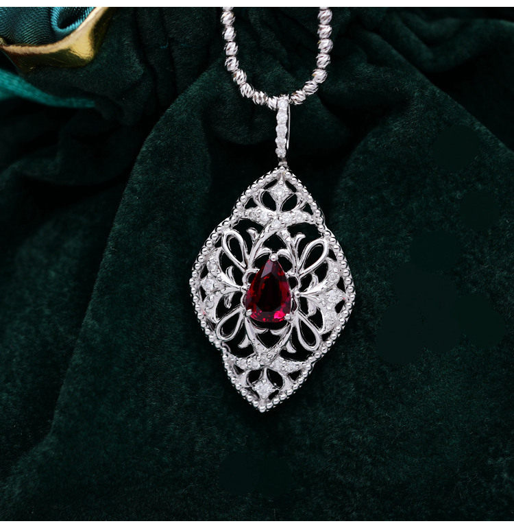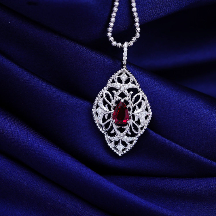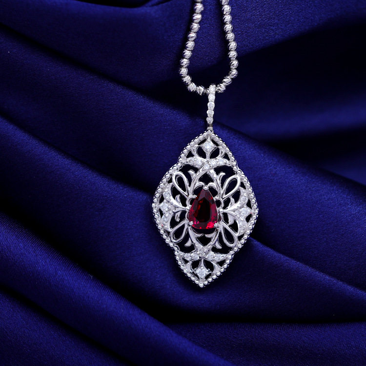 Ювелирное украшение, рубиновое бриллиантовое платиновое ожерелье, 1.138 карат, золото 750 пробы
