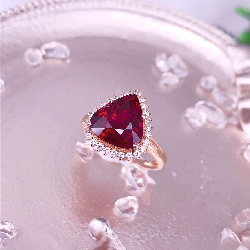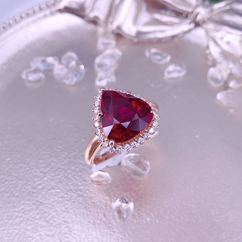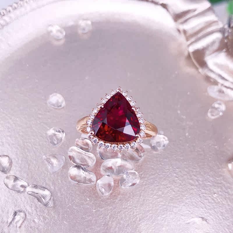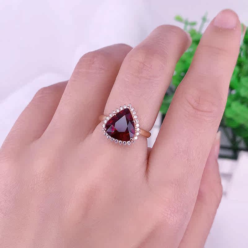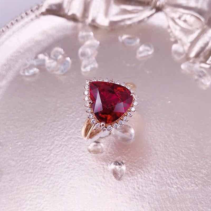 八通宝玉 Charlotte tilbury, натуральное красное турмалиновое кольцо в форме капли, золотая бриллиантовая инкрустация камня, золото 750 пробы