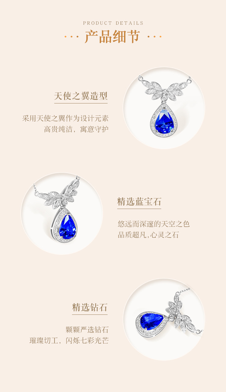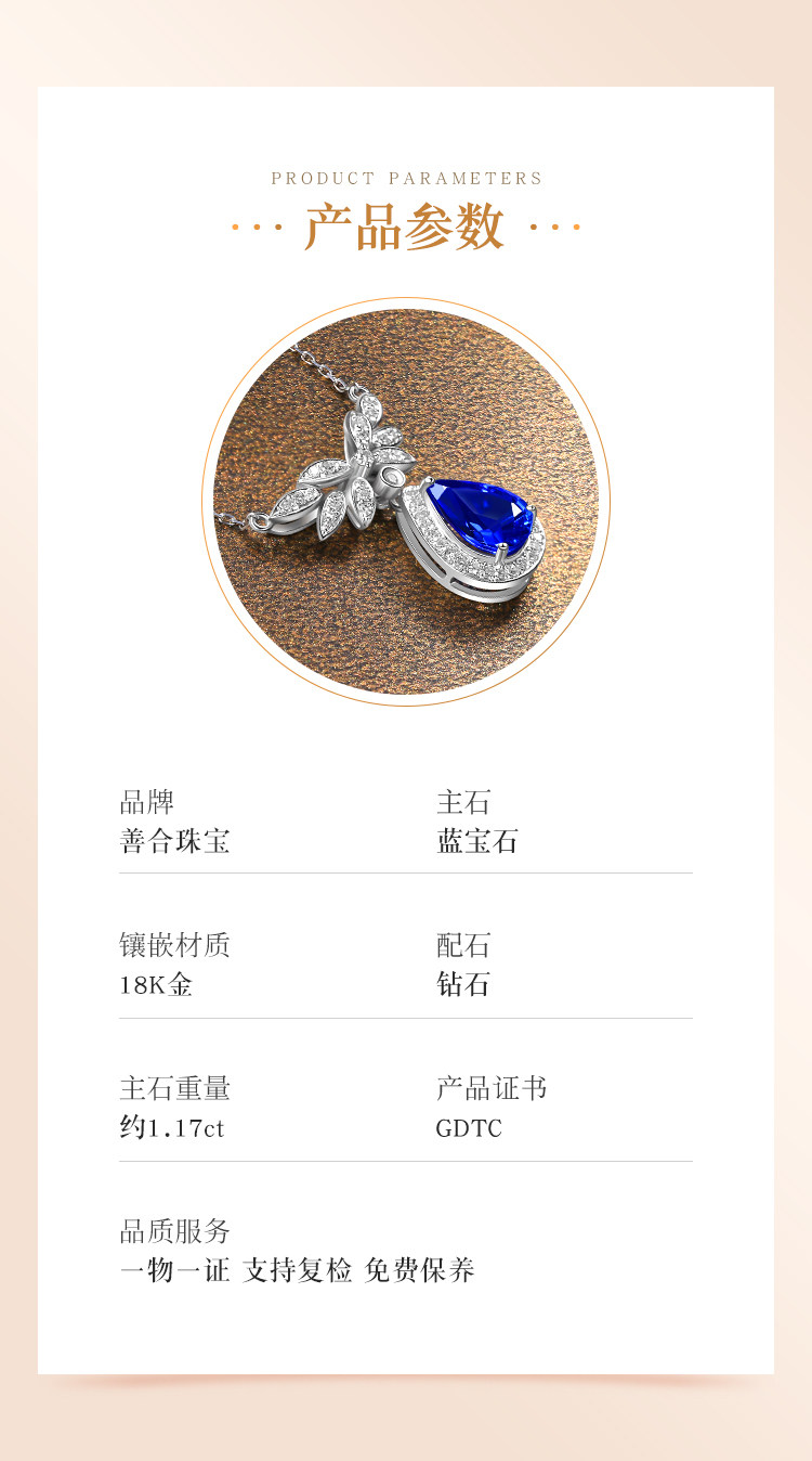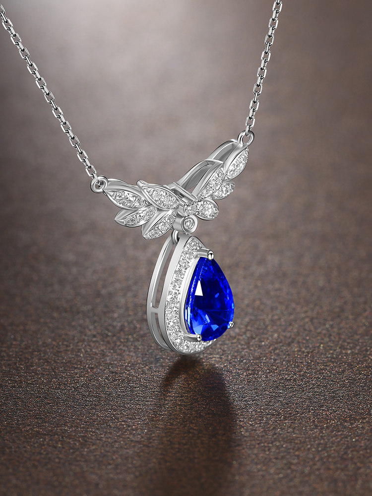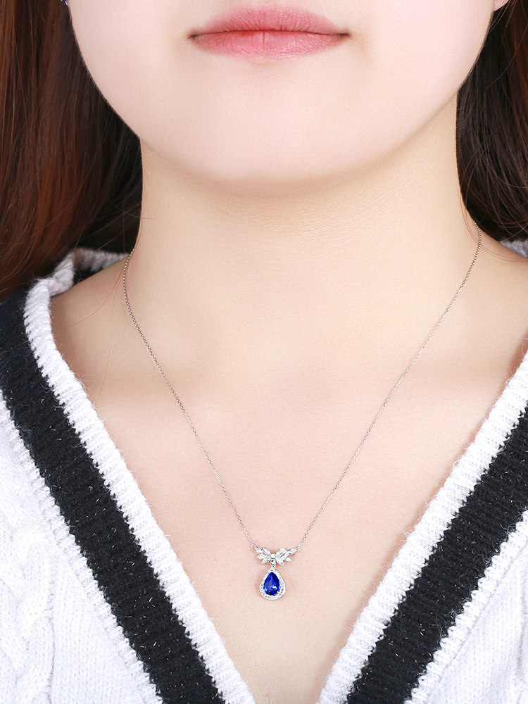 善合 Васильковое ювелирное украшение, сапфировая подвеска из нефрита, цепочка до ключиц, бриллиантовая инкрустация камня, золото 750 пробы, (в наличии на складе)
