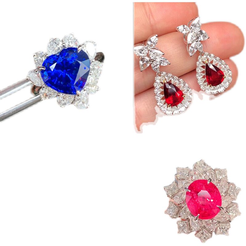Королевский сапфировый драгоценный камень для кольца, ожерелье, инкрустация камня, золото 750 пробы