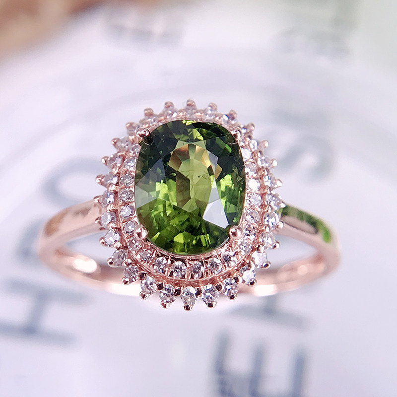 拉加尼 Charlotte tilbury, модное ювелирное украшение, натуральное турмалиновое кольцо, бриллиантовая инкрустация камня, легкий роскошный стиль, 18 карат