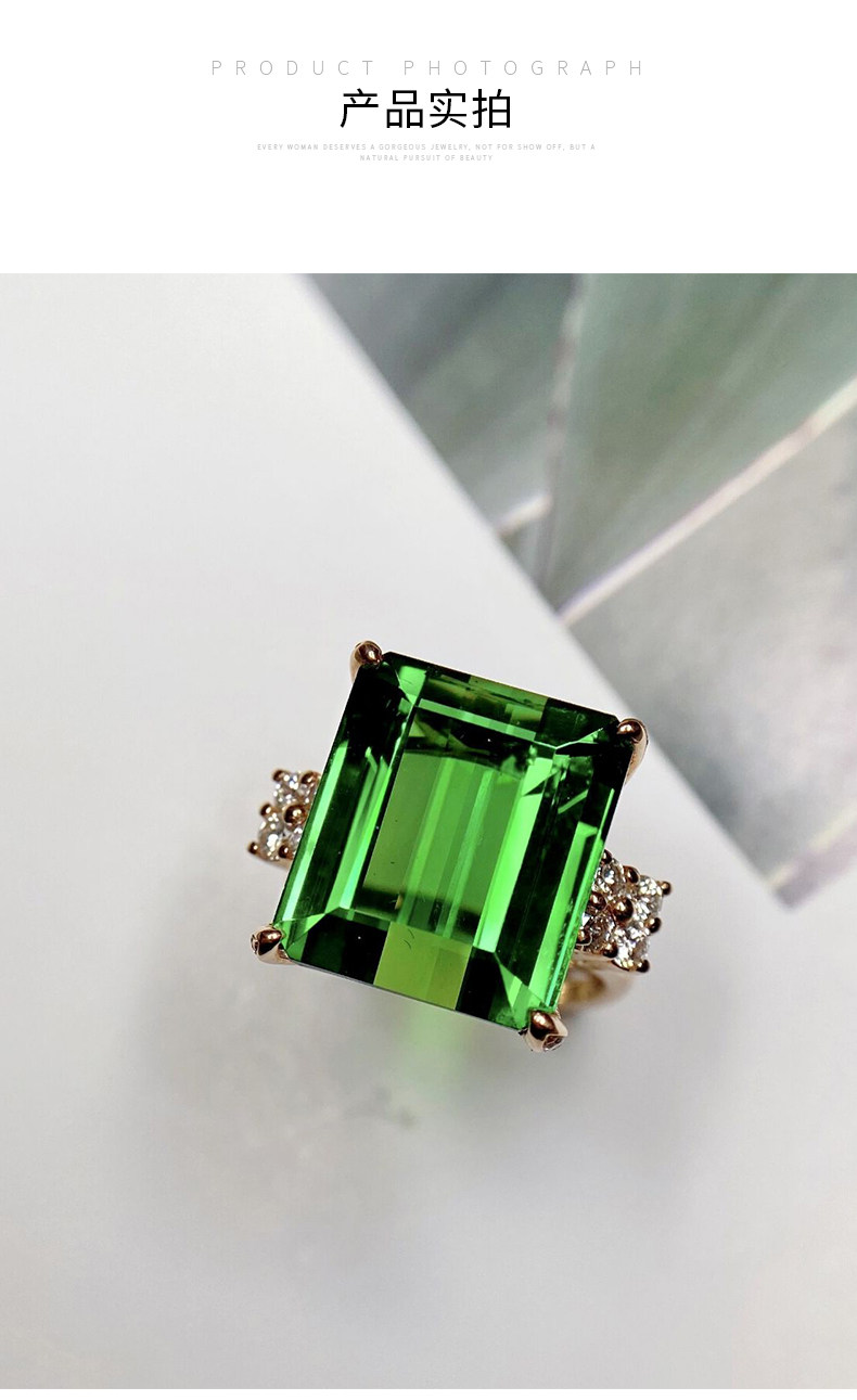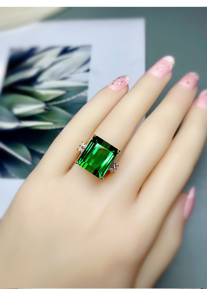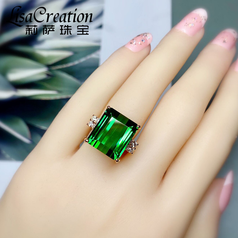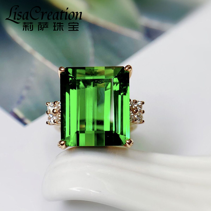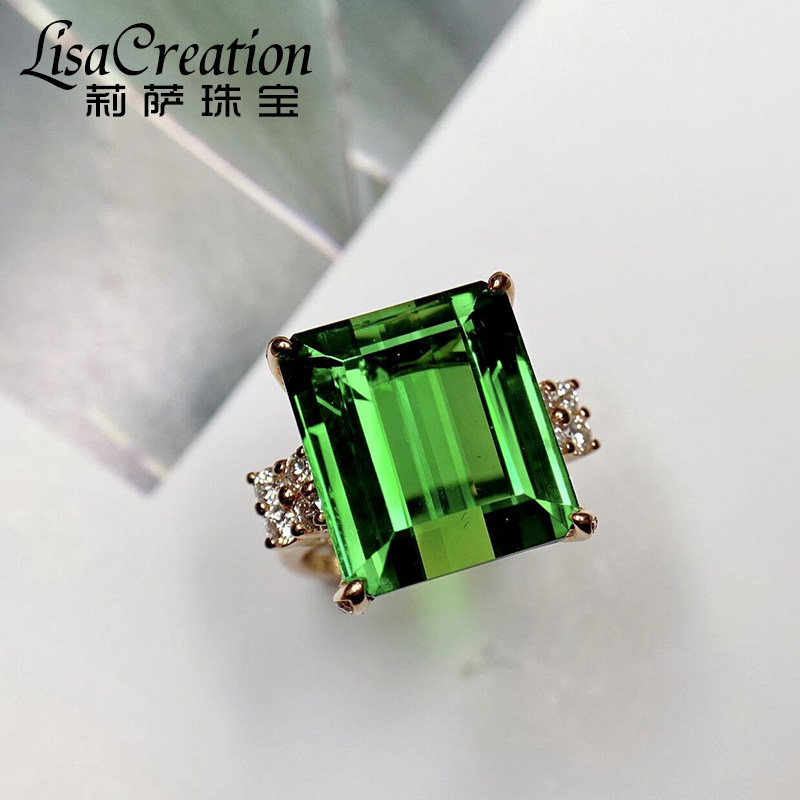 Золотое бриллиантовое ювелирное украшение, натуральное турмалиновое кольцо, 18 карат, розовое золото, 16.35 карат