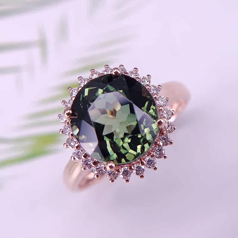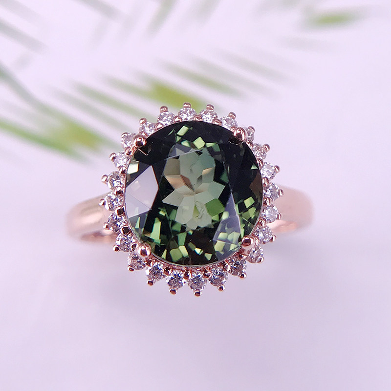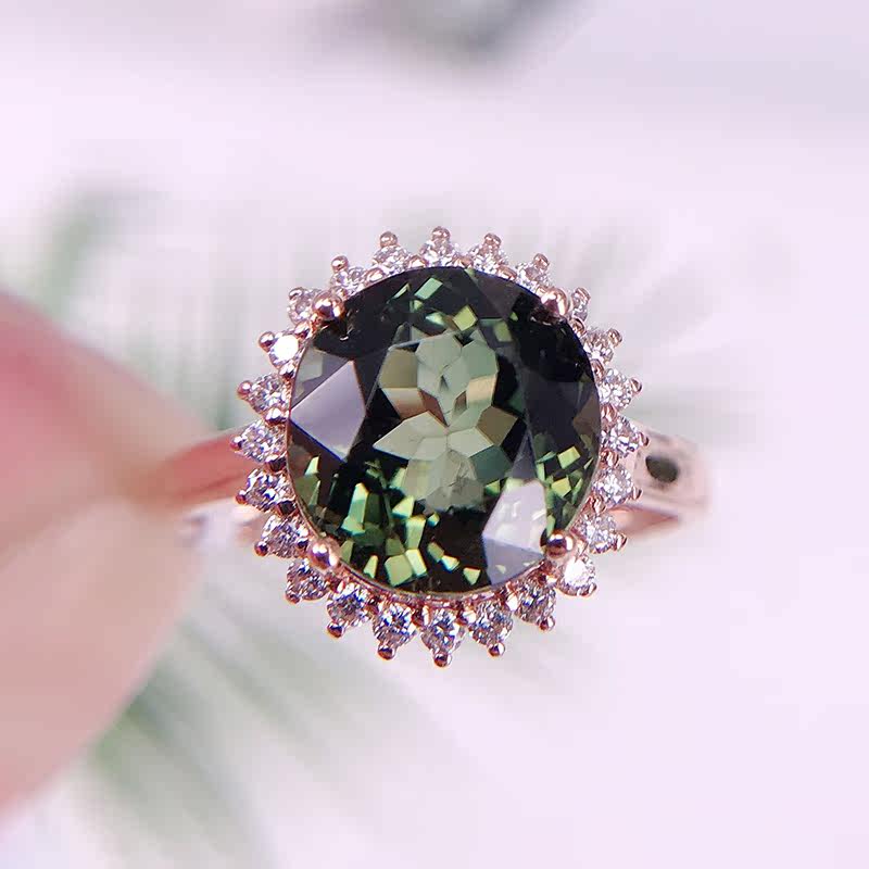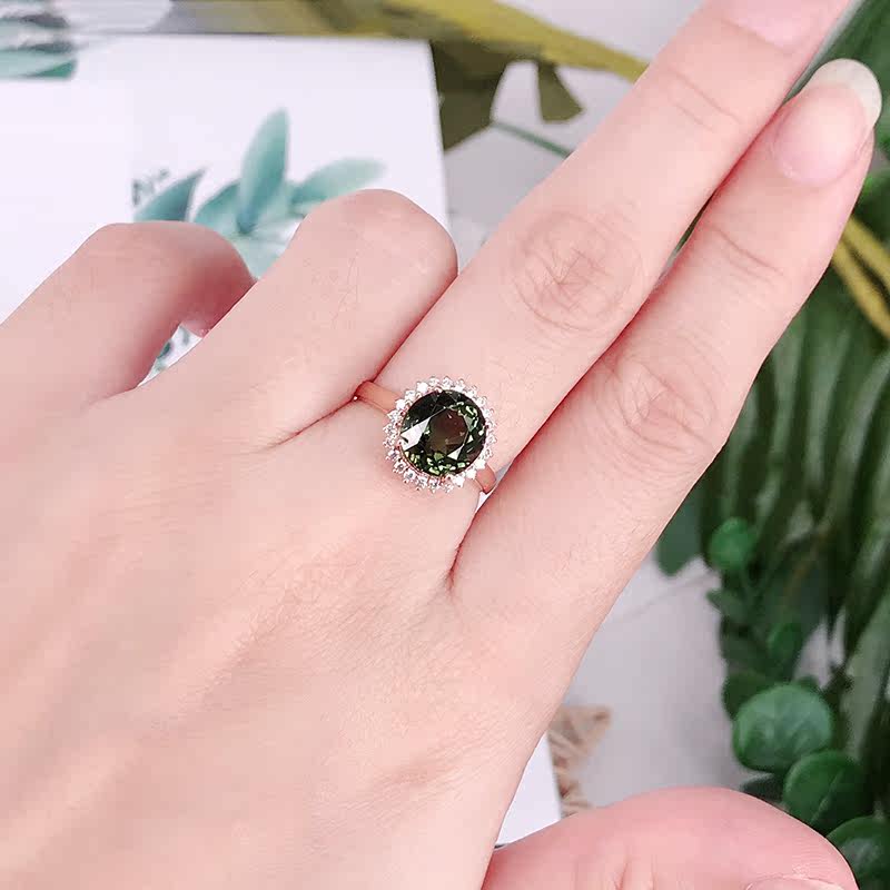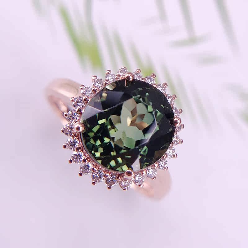 娜琴 Charlotte tilbury, модное прозрачное ювелирное украшение, натуральное турмалиновое кольцо, бриллиантовая инкрустация камня, легкий роскошный стиль, 18 карат