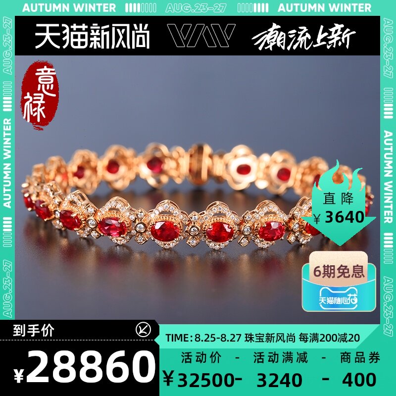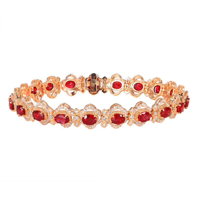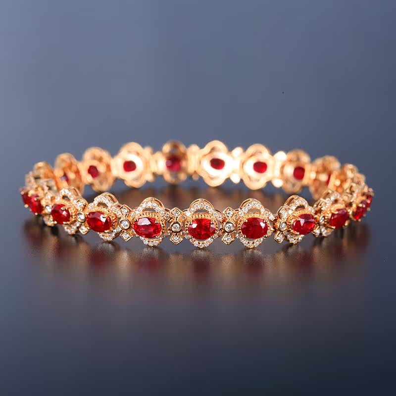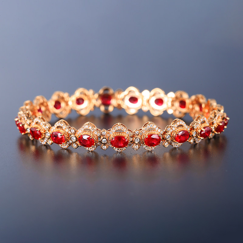 意禄 Ювелирное украшение, рубиновый браслет из Мьянмы из натурального камня, бриллиантовая инкрустация камня, 7.78 карат, женский стиль, золото 750 пробы, (в наличии на складе)