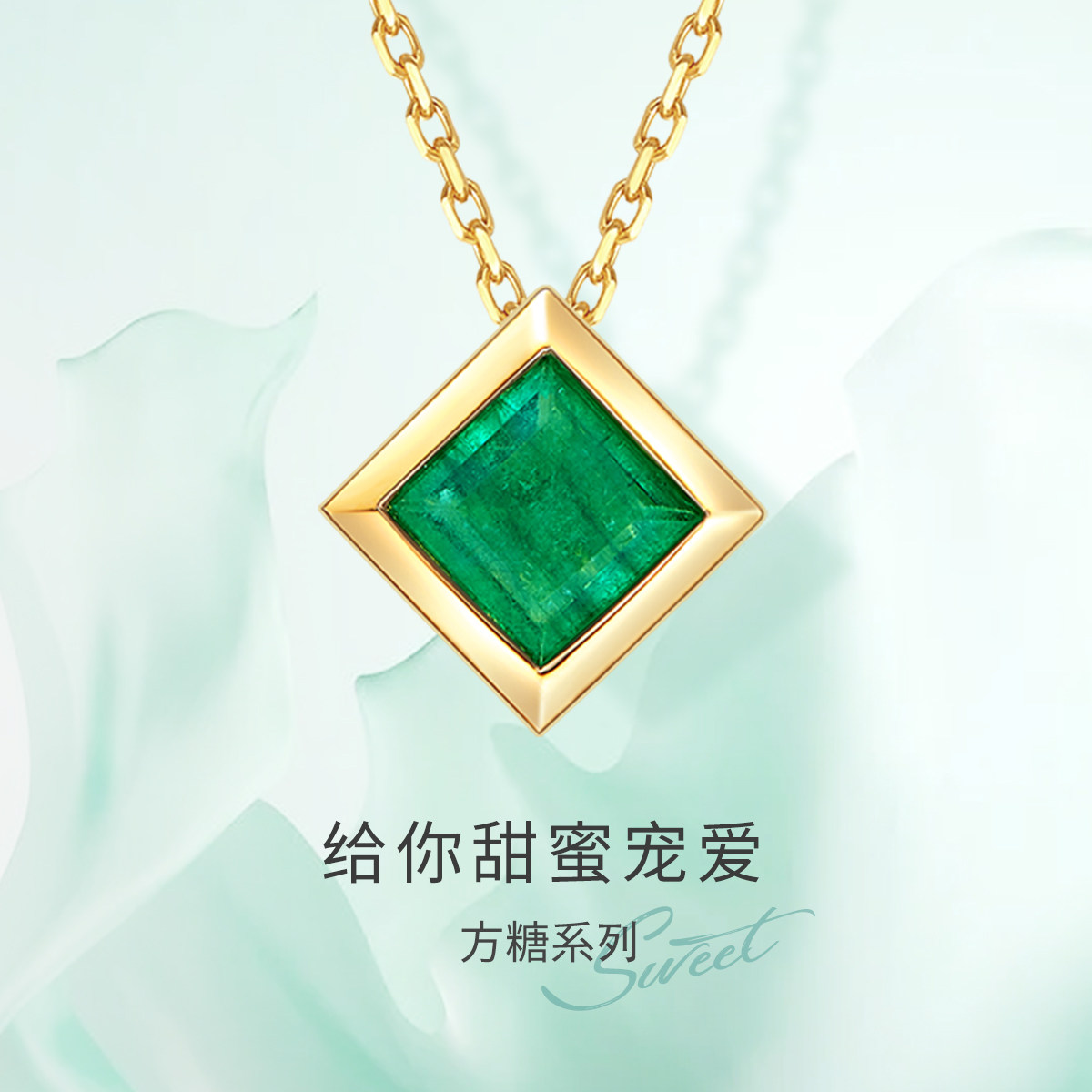 Подвеска изумруд, ожерелье, цепочка до ключиц, золото 750 пробы, легкий роскошный стиль
