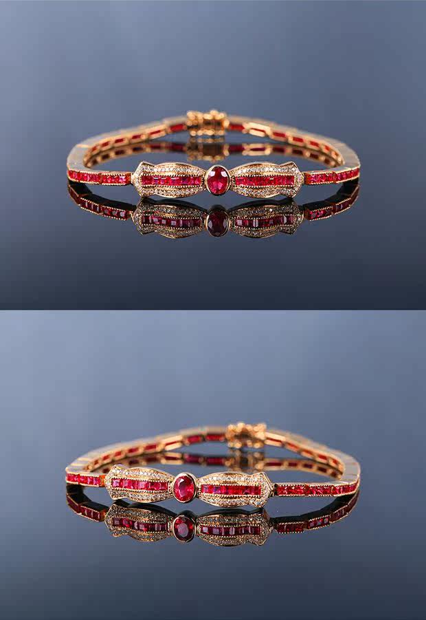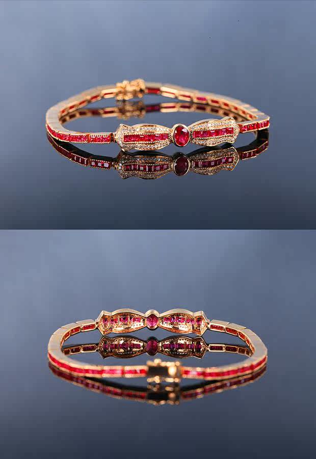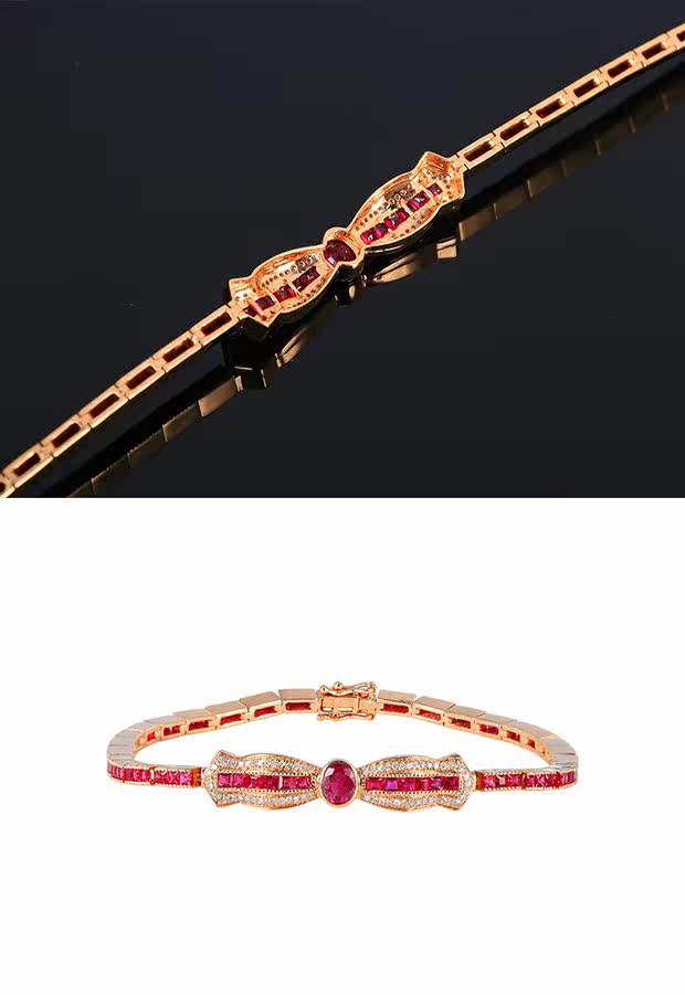 Рубиновый браслет из натурального камня, бриллиантовое ювелирное украшение, (в наличии на складе), 3.34 карат, золото 750 пробы