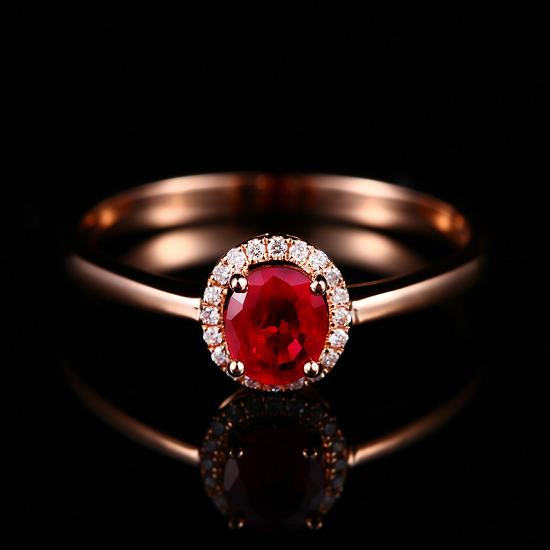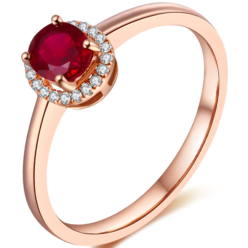 Рубиновое кольцо с камнем, бриллиантовая инкрустация камня, 0.6 карат, золото 750 пробы