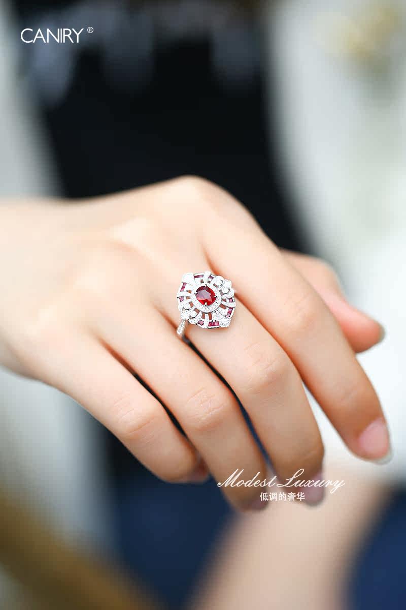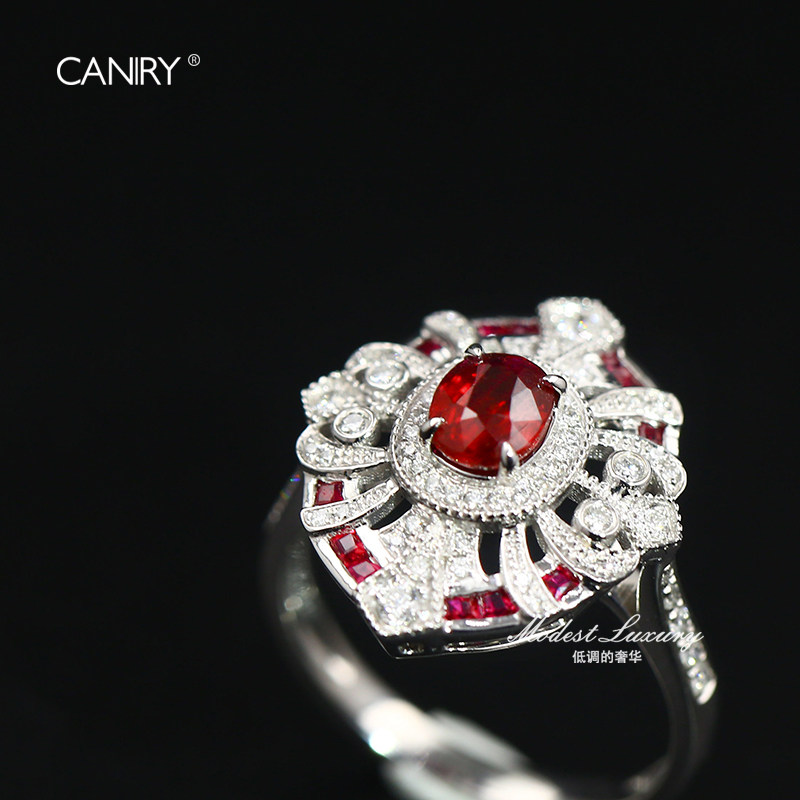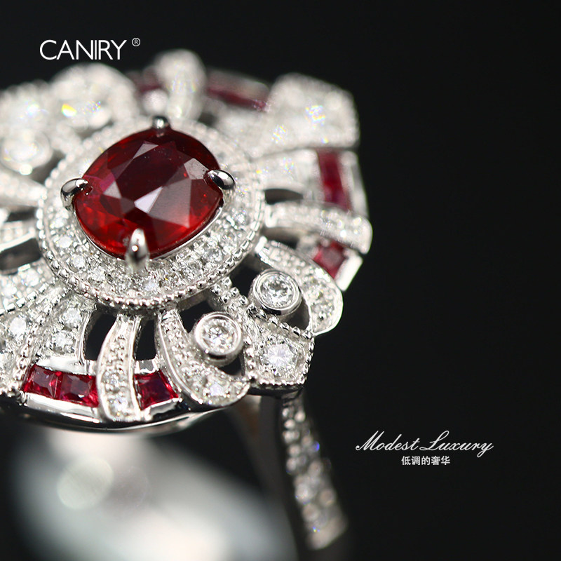 CANIRY/卡妮瑞 Натуральное рубиновое бриллиантовое кольцо с камнем, золото 750 пробы, в цветочек