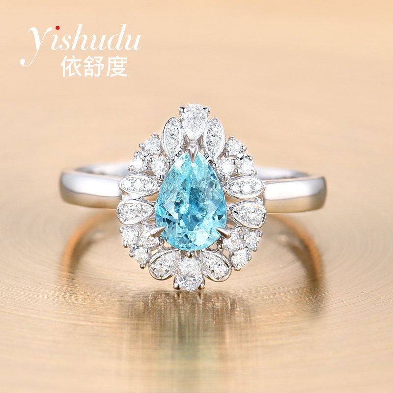 Натуральное турмалиновое кольцо, бриллиантовая инкрустация камня в форме капли, 0.85 карат, золото 750 пробы, делается под заказ