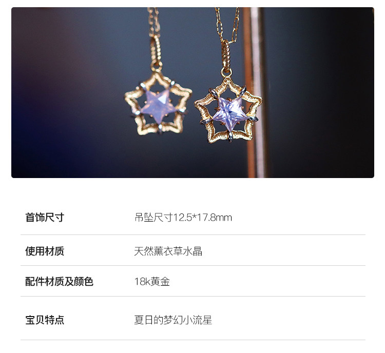 Оригинальная лавандовая подвеска с аметистом, ожерелье, 18 карат, на удачу, стиль Лолита