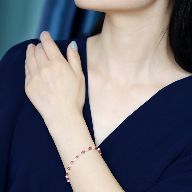 - Розовый турмалиновый браслет из жемчуга, 14 карат