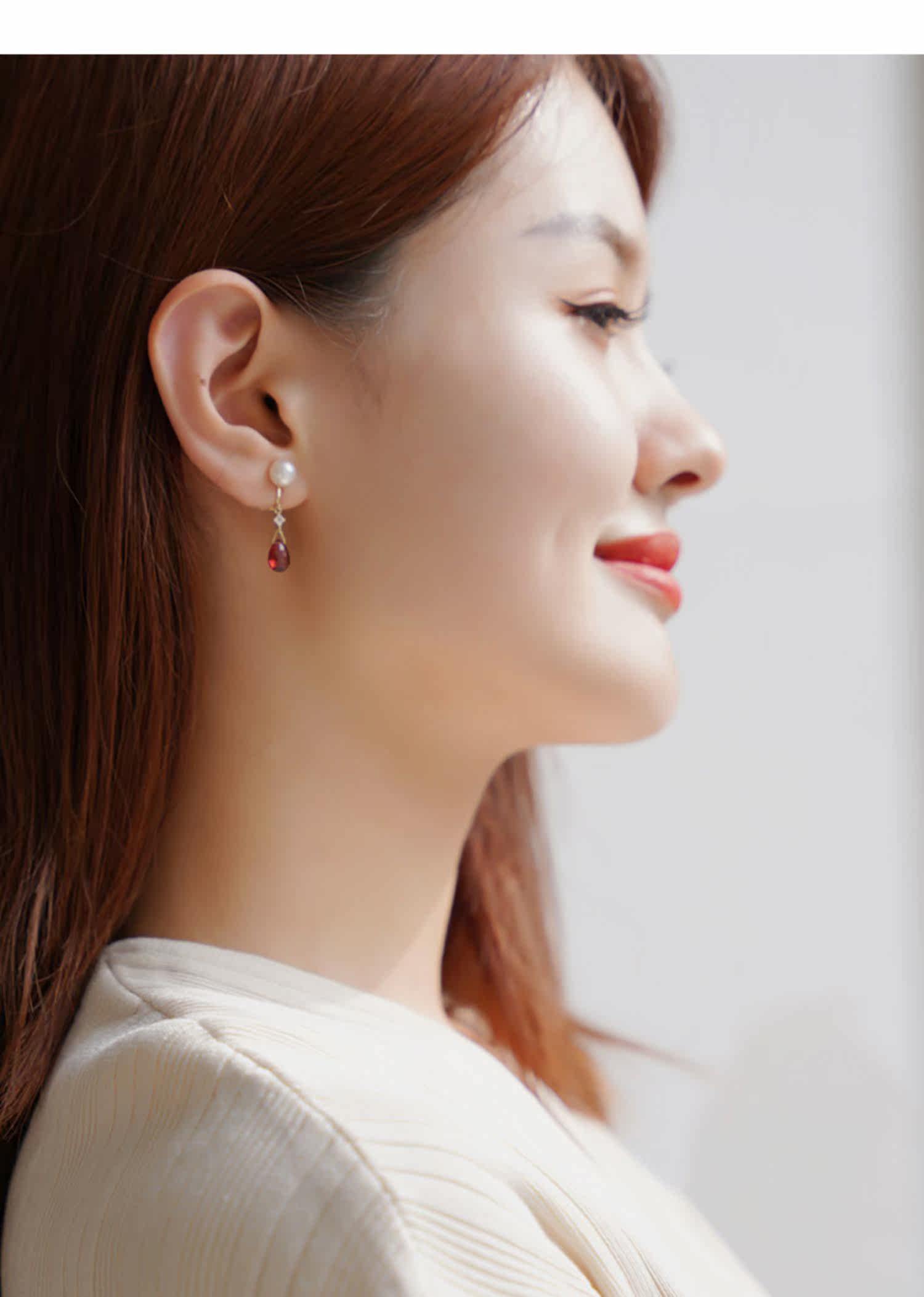Японские клипсы из граната из жемчуга, серьги для друга, без проколов ушей, подарок для девушки