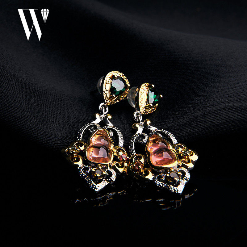 Изумрудные натуральные оригинальные серьги, небольшая дизайнерская ретро инкрустация камня ручной работы, с драгоценным камнем, легкий роскошный стиль