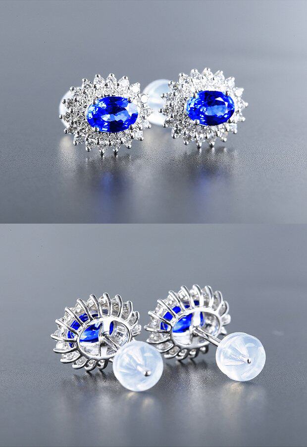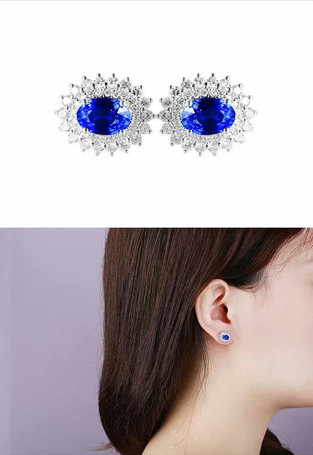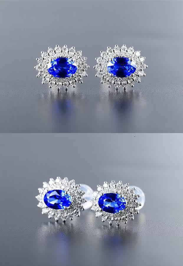 Натуральные сапфировые бриллиантовые серьги, (в наличии на складе), 1.22 карат, золото 750 пробы