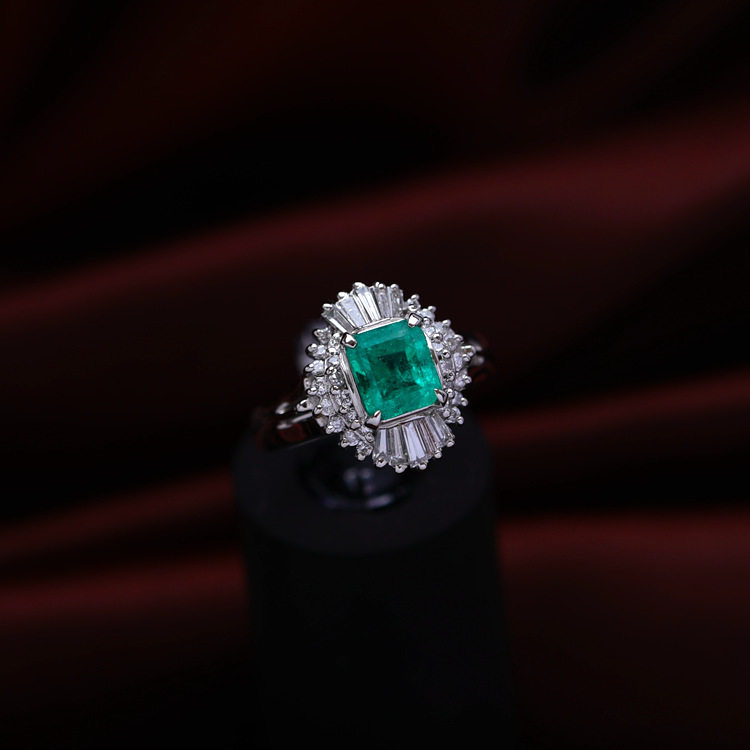 Columbia, ювелирное украшение, бриллиантовое платиновое кольцо изумруд, 1.17 карат, с драгоценным камнем
