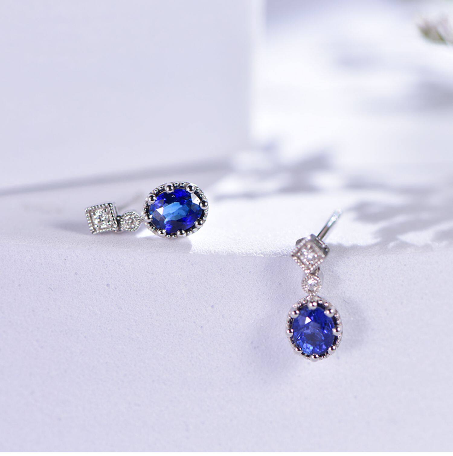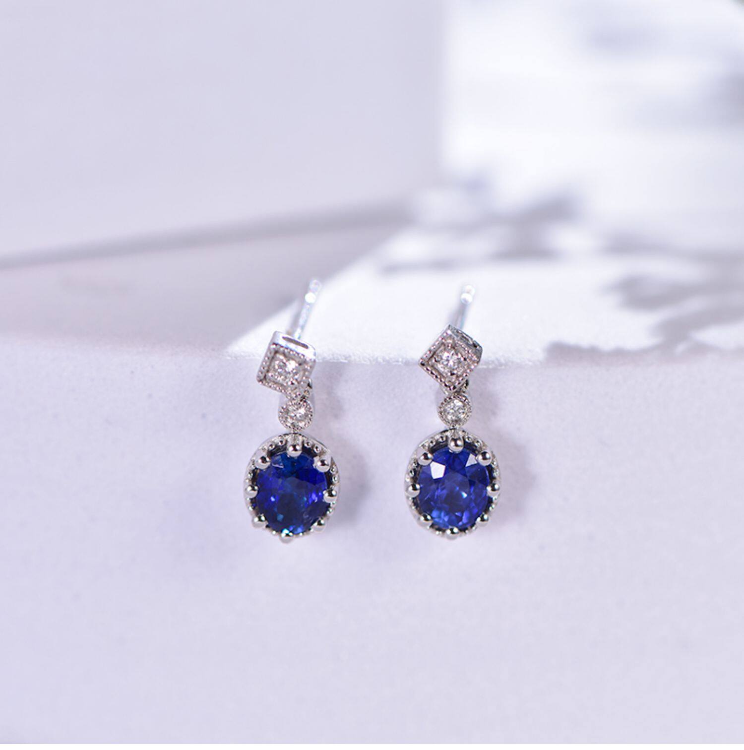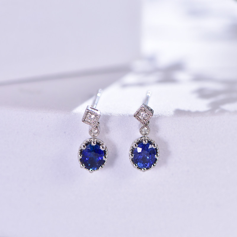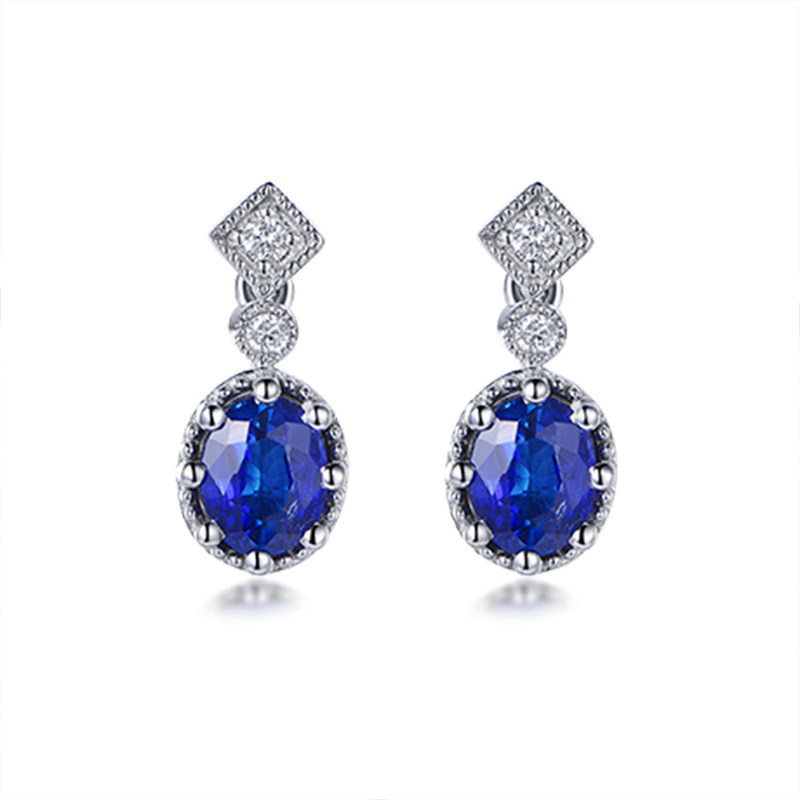 Королевский голубой бриллиант, ювелирное украшение, сапфировые серьги из нефрита, 0.96 карат, золото 750 пробы
