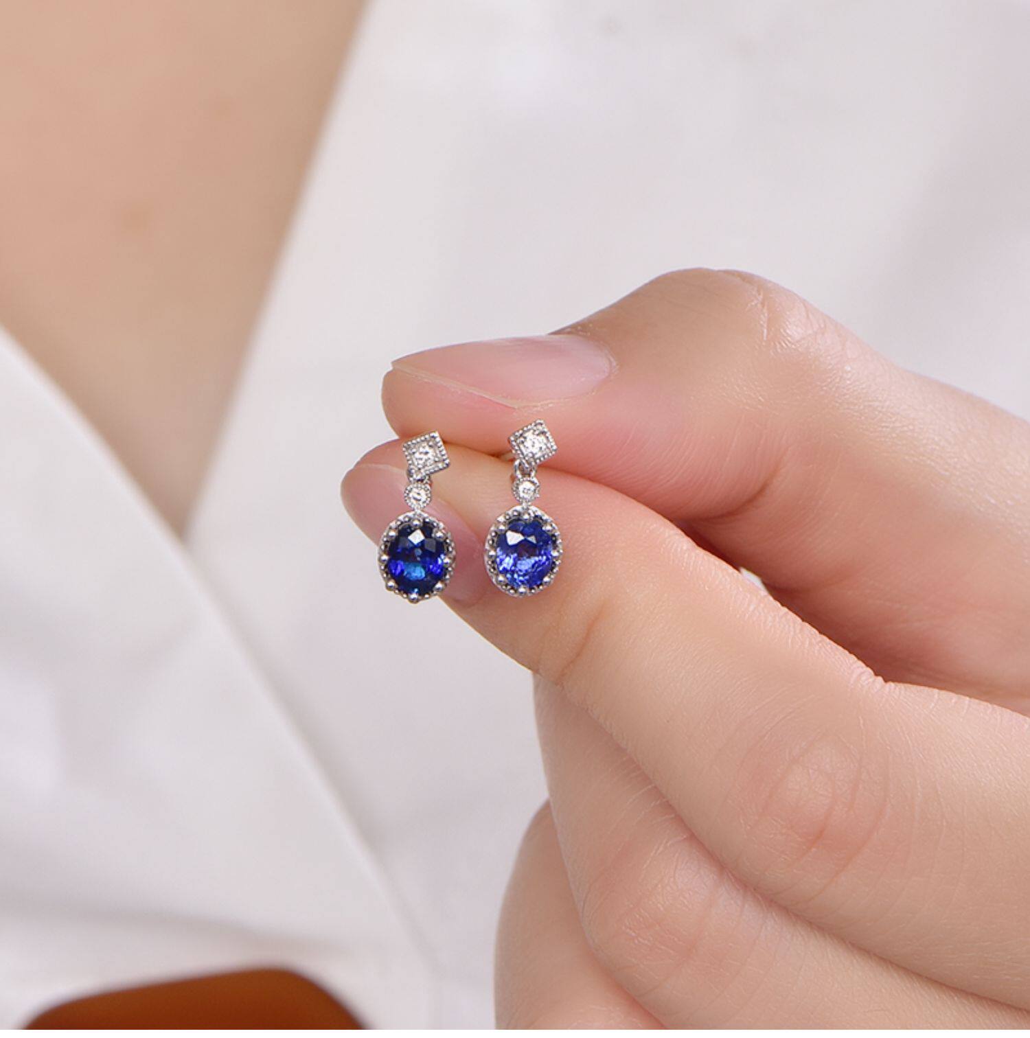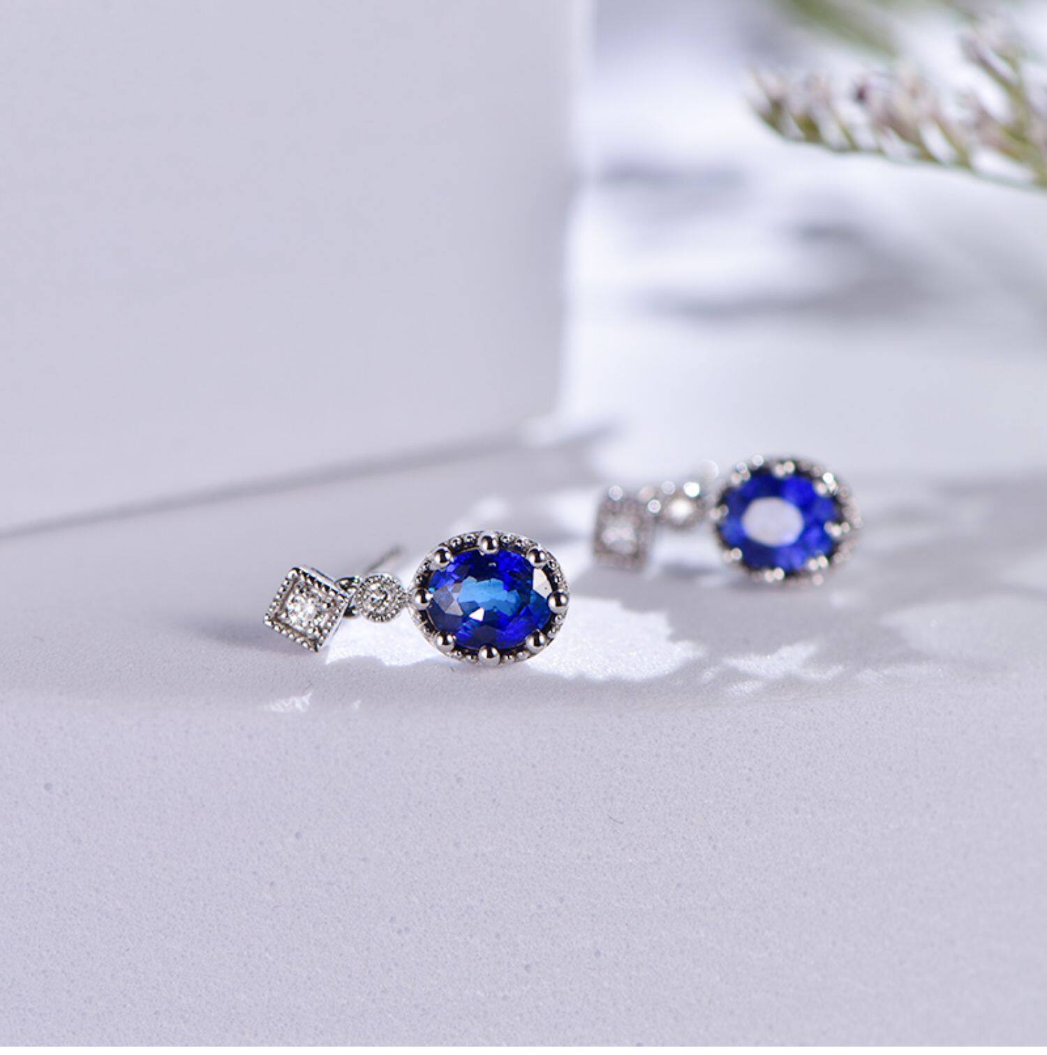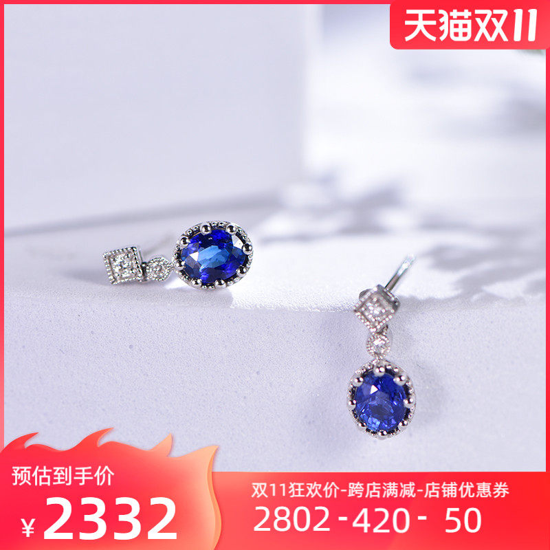 Королевский голубой бриллиант, ювелирное украшение, сапфировые серьги из нефрита, 0.96 карат, золото 750 пробы
