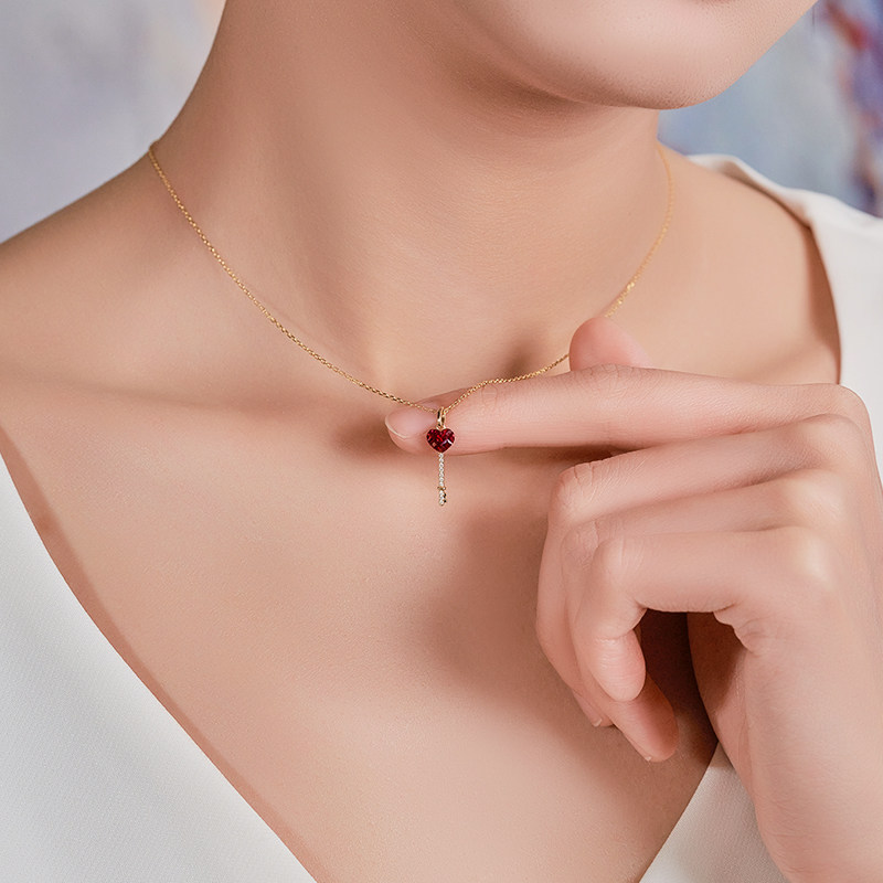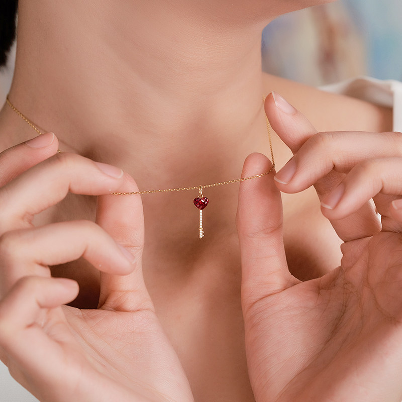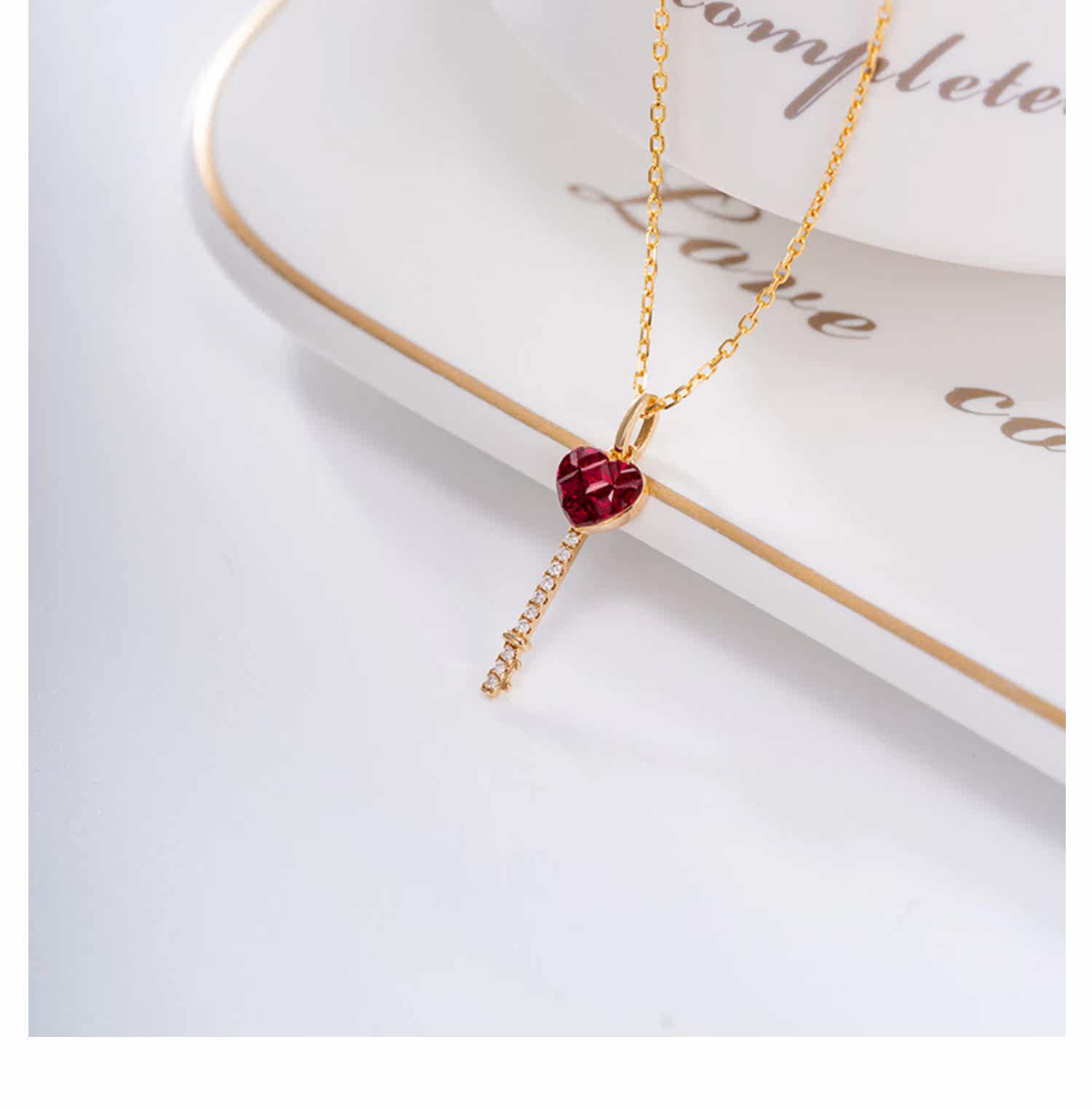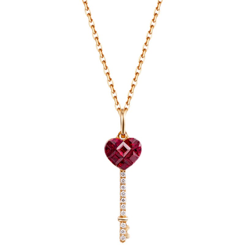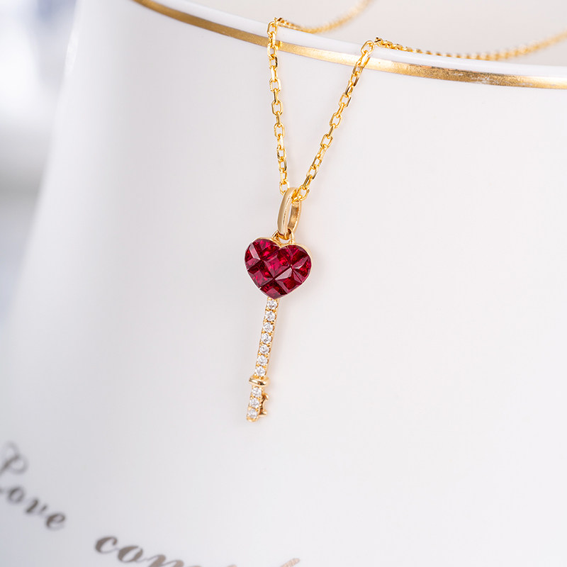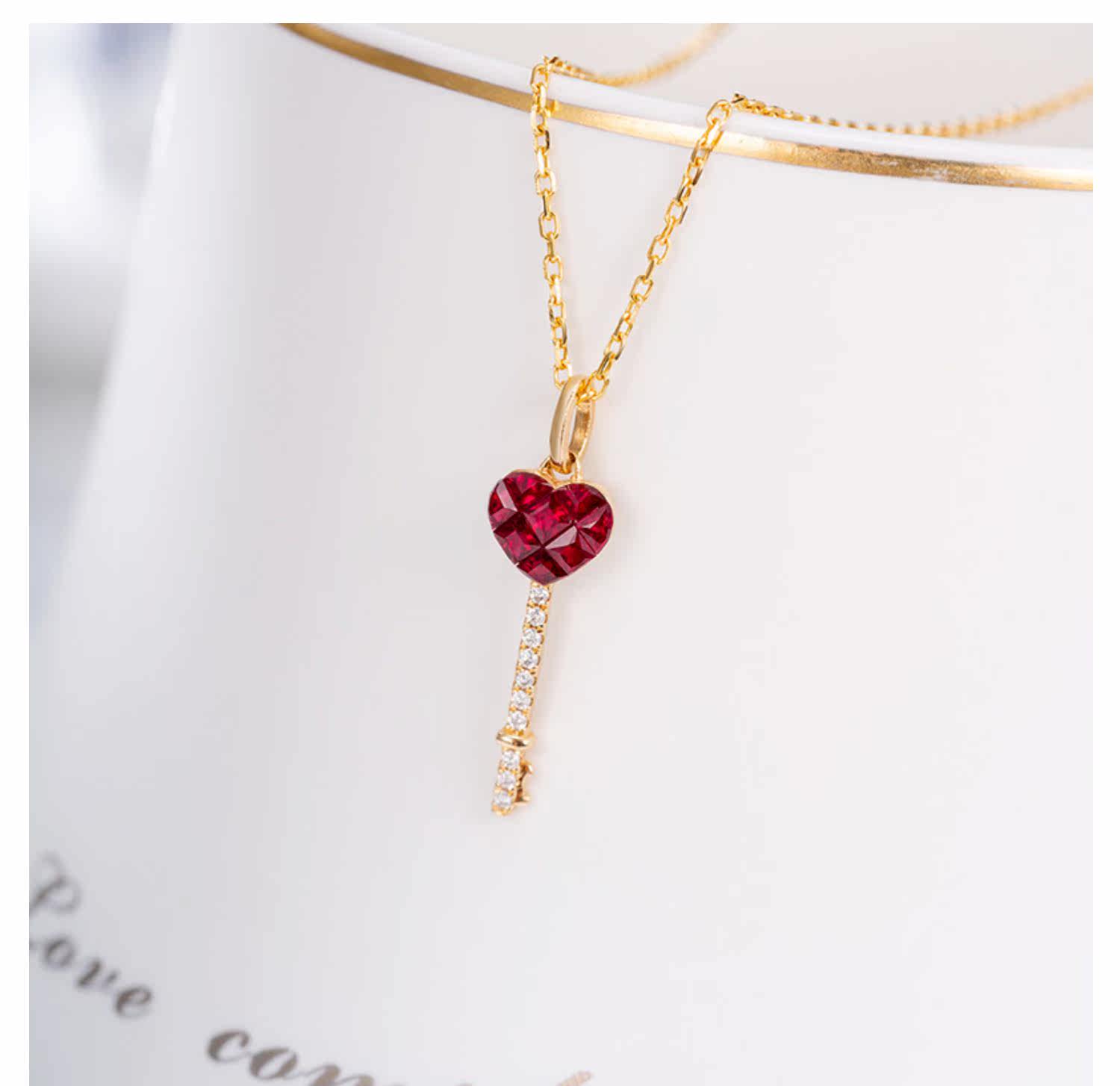 Ювелирное украшение в форме сердца для ключей, натуральная рубиновая золотая подвеска, (в наличии на складе), 18 карат, розовое золото