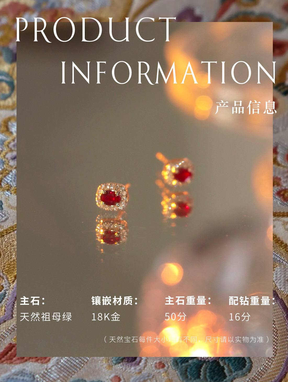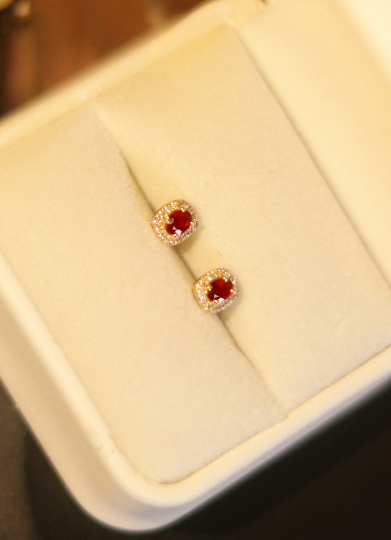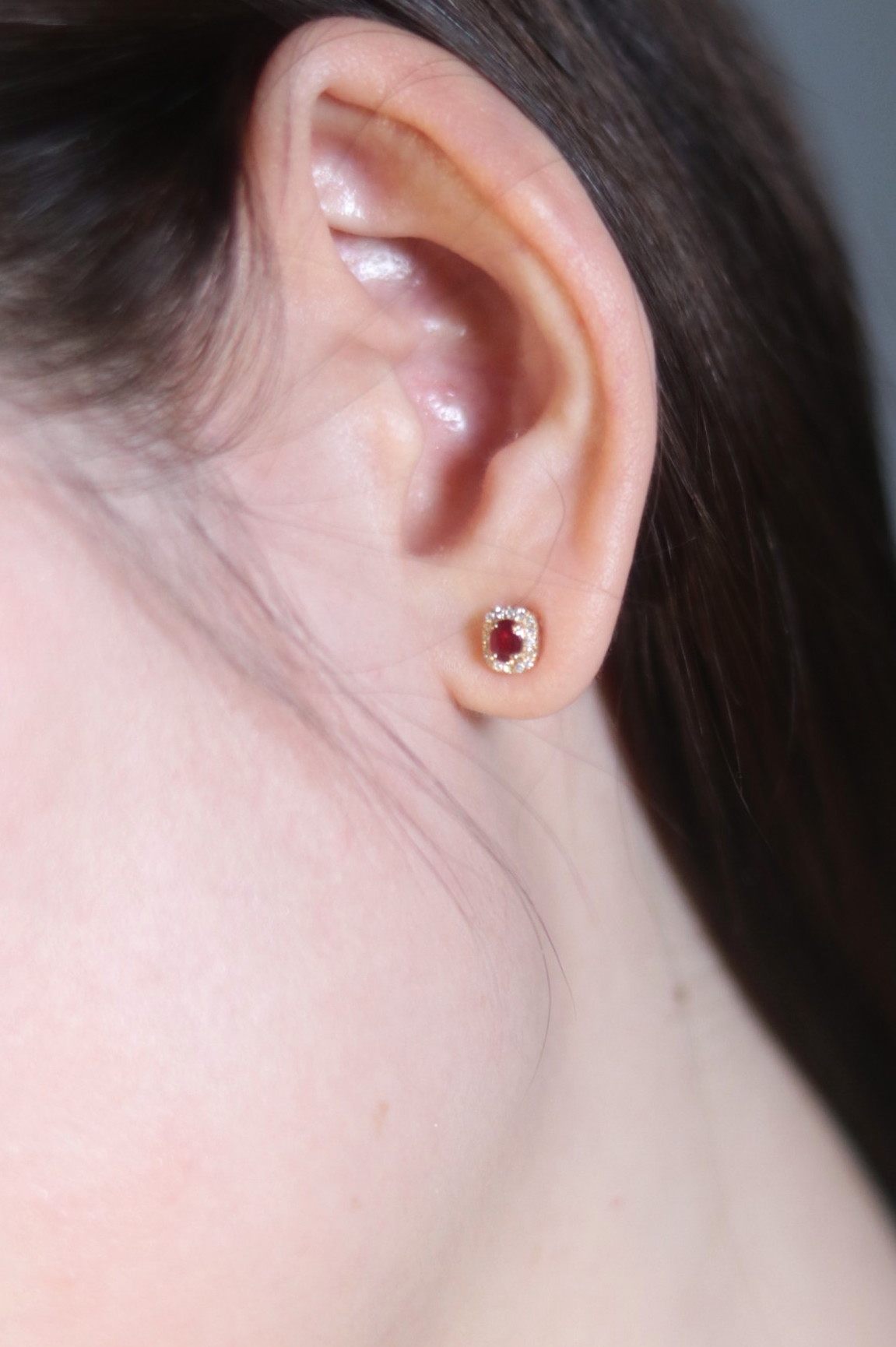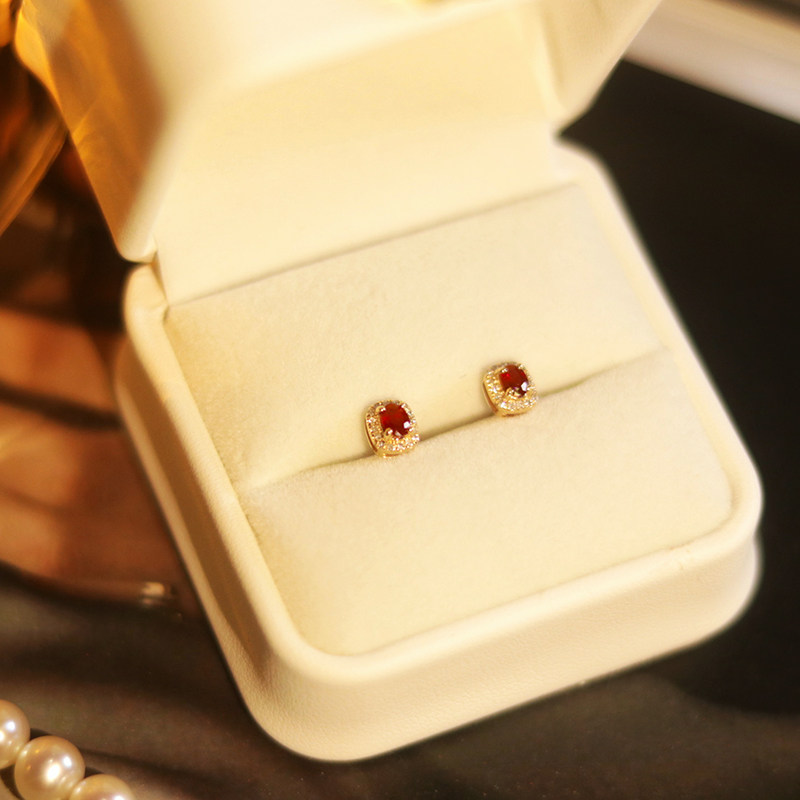 Натуральная рубиновая ретро золотая бриллиантовая инкрустация камня, серьги, 18 карат