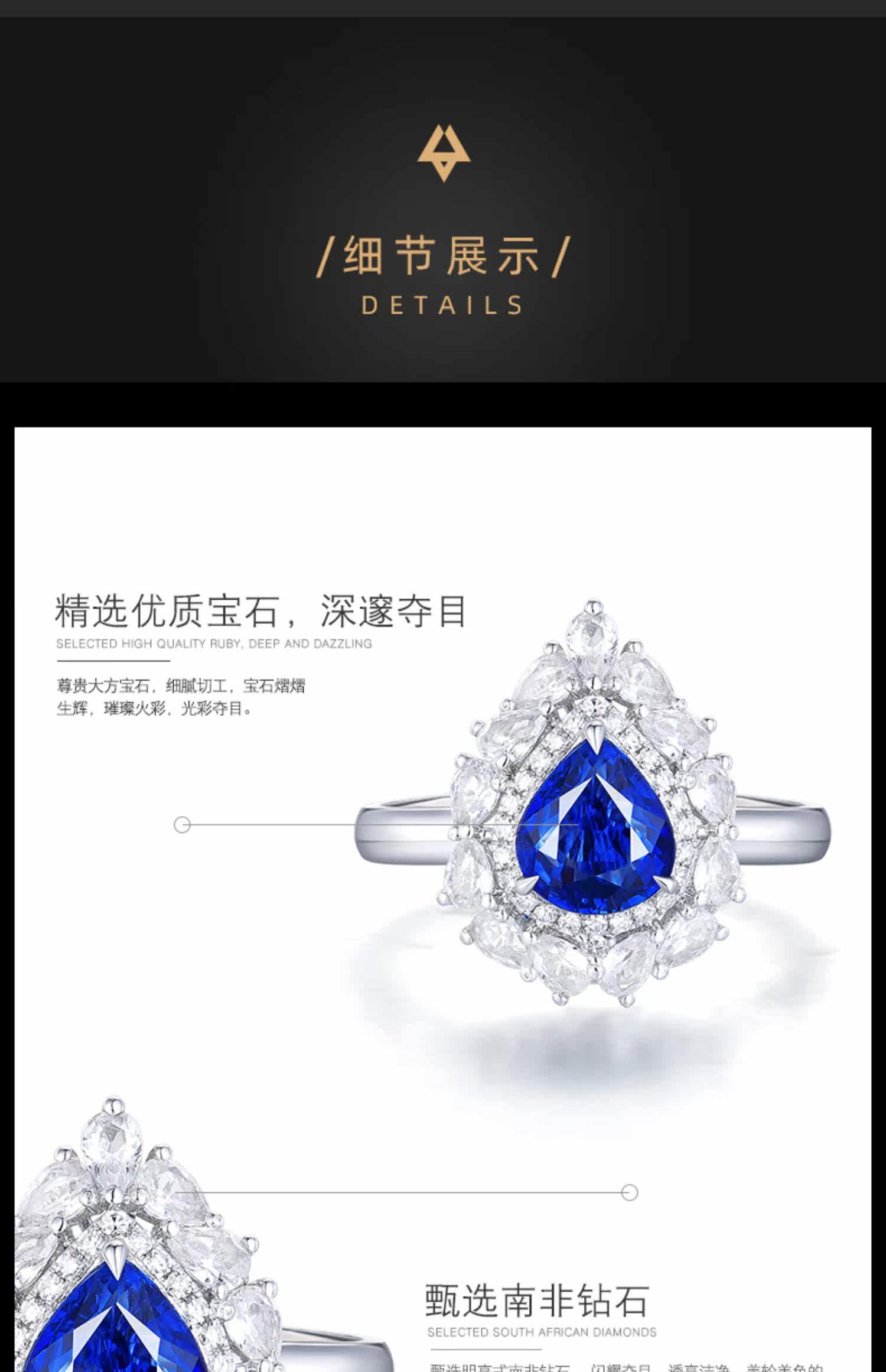 Натуральное королевское сапфировое кольцо с камнем в форме капли, сапфировая инкрустация камня, 1.37 карат, золото 750 пробы