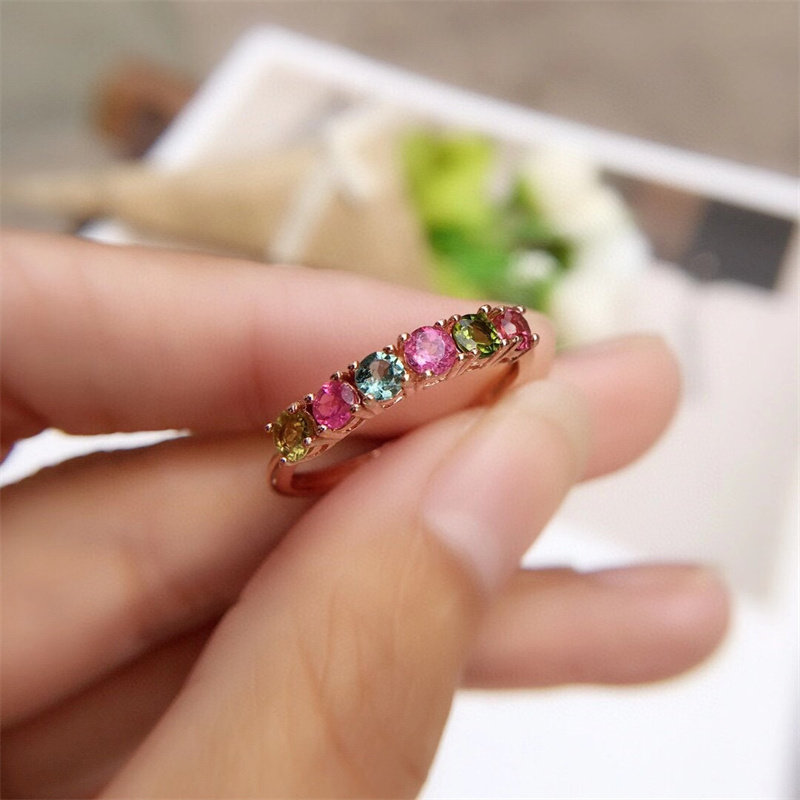 Универсальное радужное турмалиновое маленькое кольцо, серебро 925 пробы