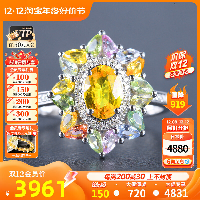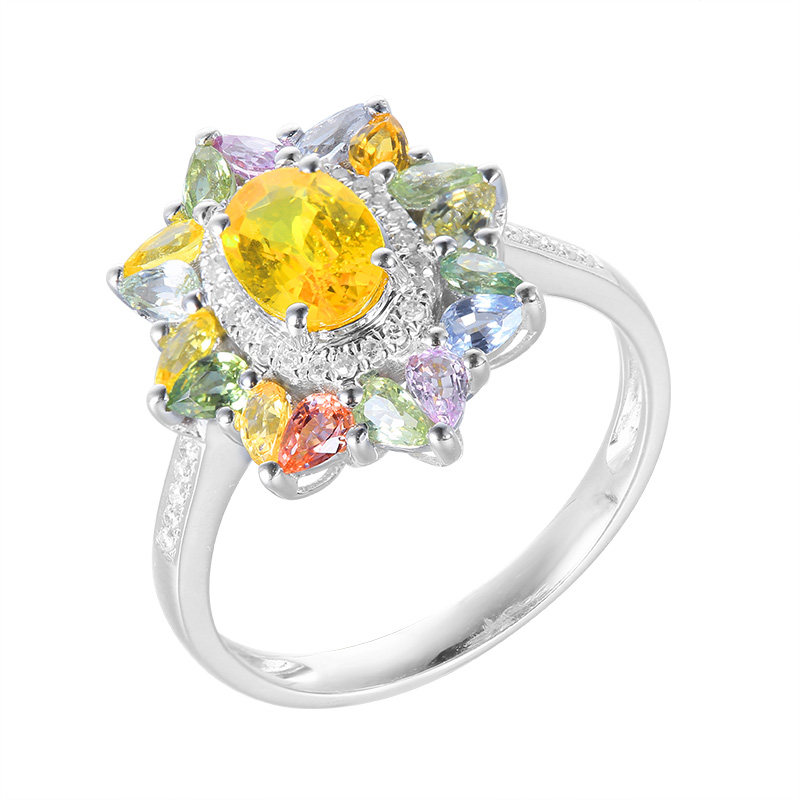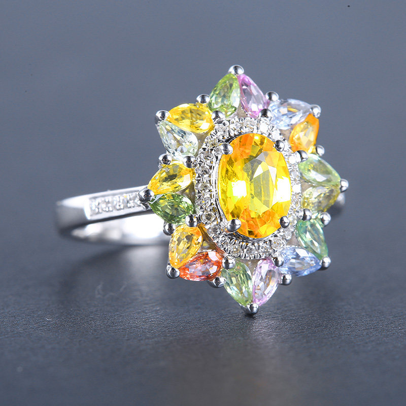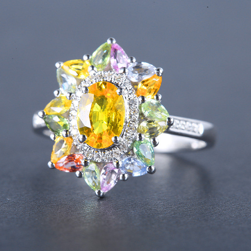 善合 Натуральное желтое ювелирное украшение, сапфировое кольцо с камнем, бриллиантовая многоцветная инкрустация камня, золото 750 пробы, делается под заказ