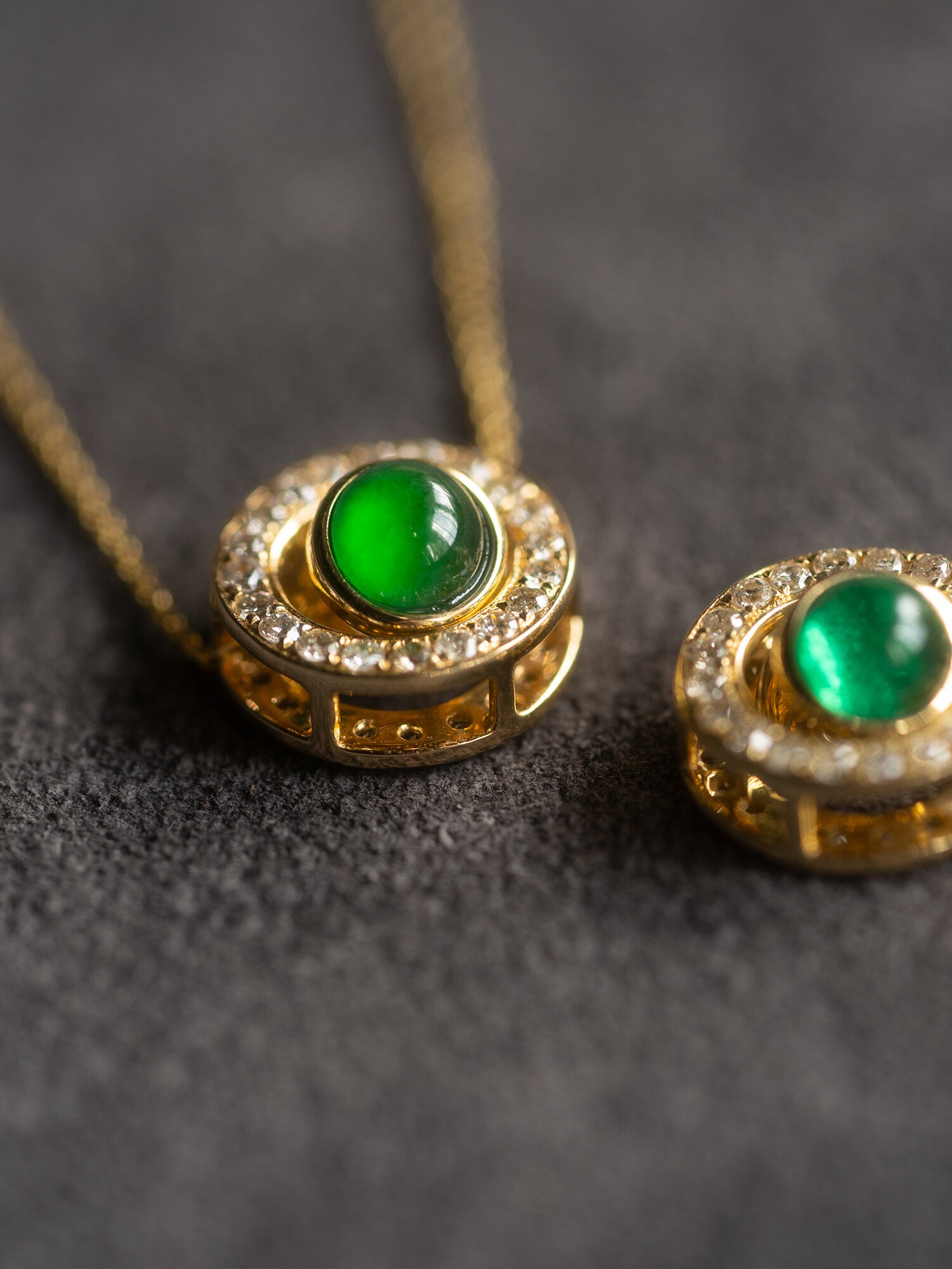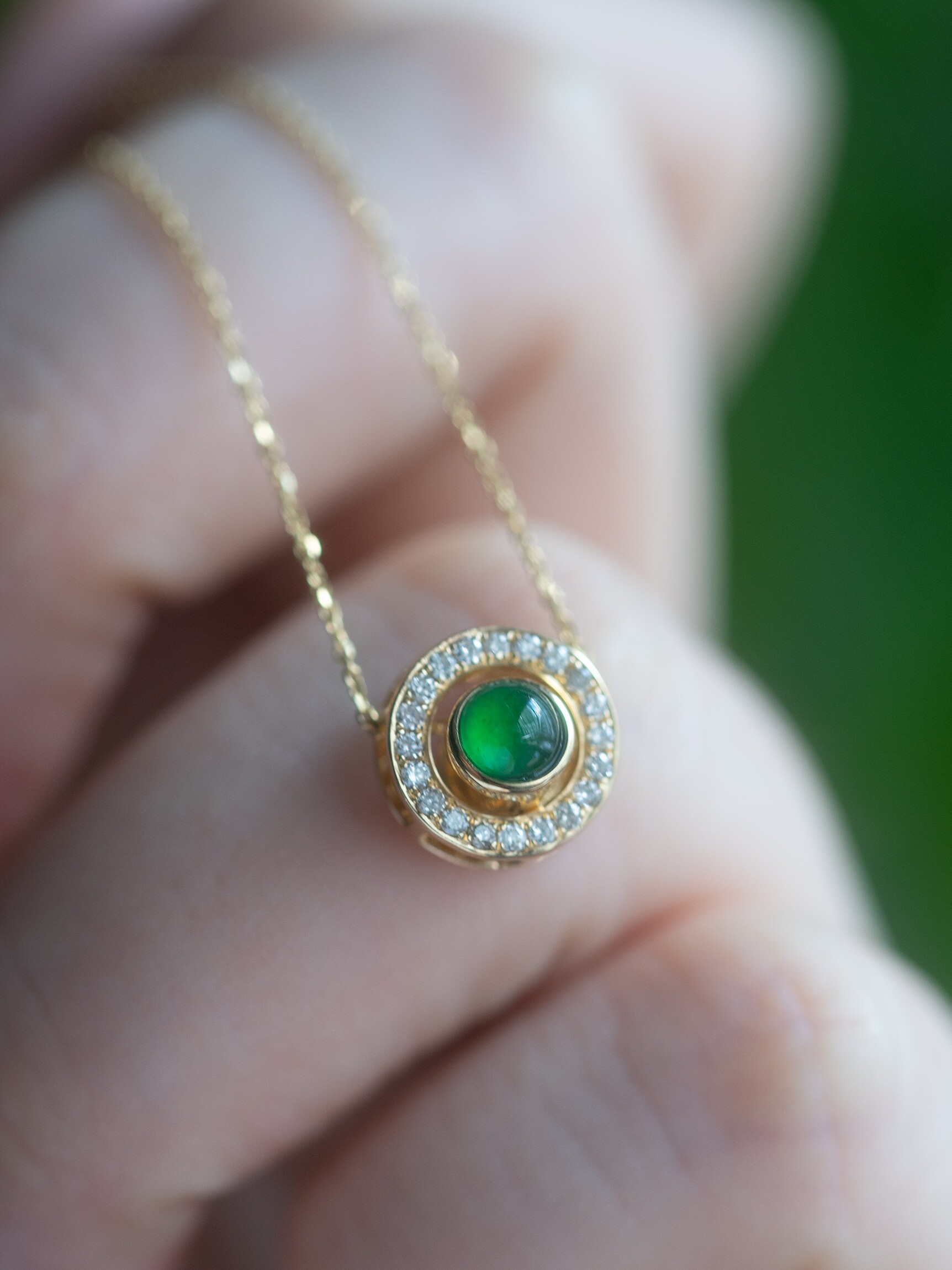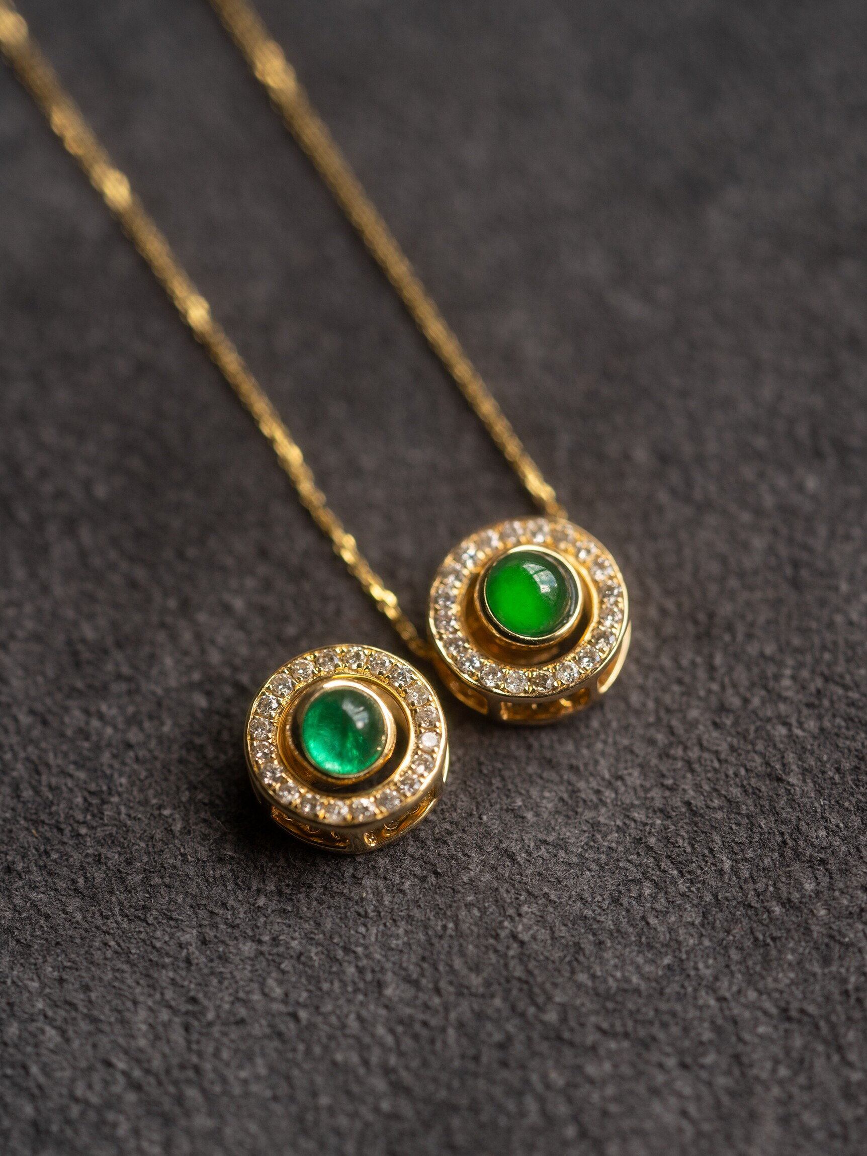 Бриллиантовая цепочка, ожерелье, изумрудная реплика из нефрита, золото 750 пробы