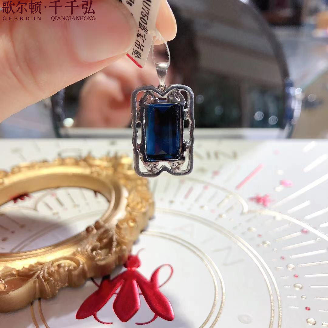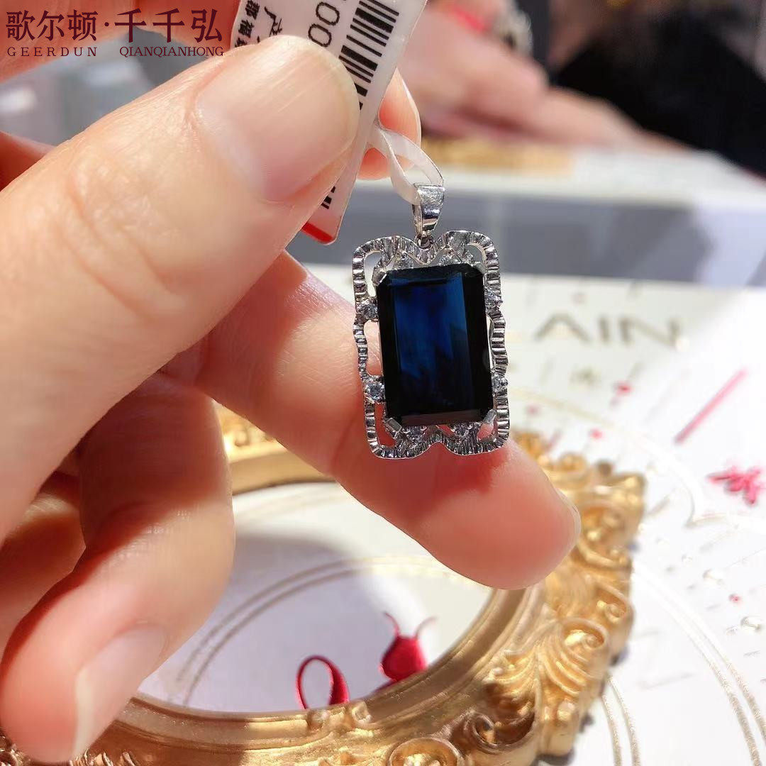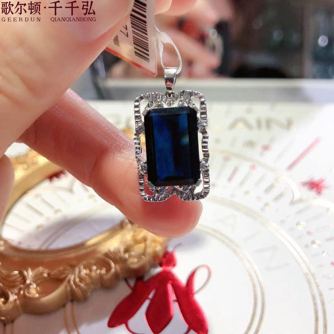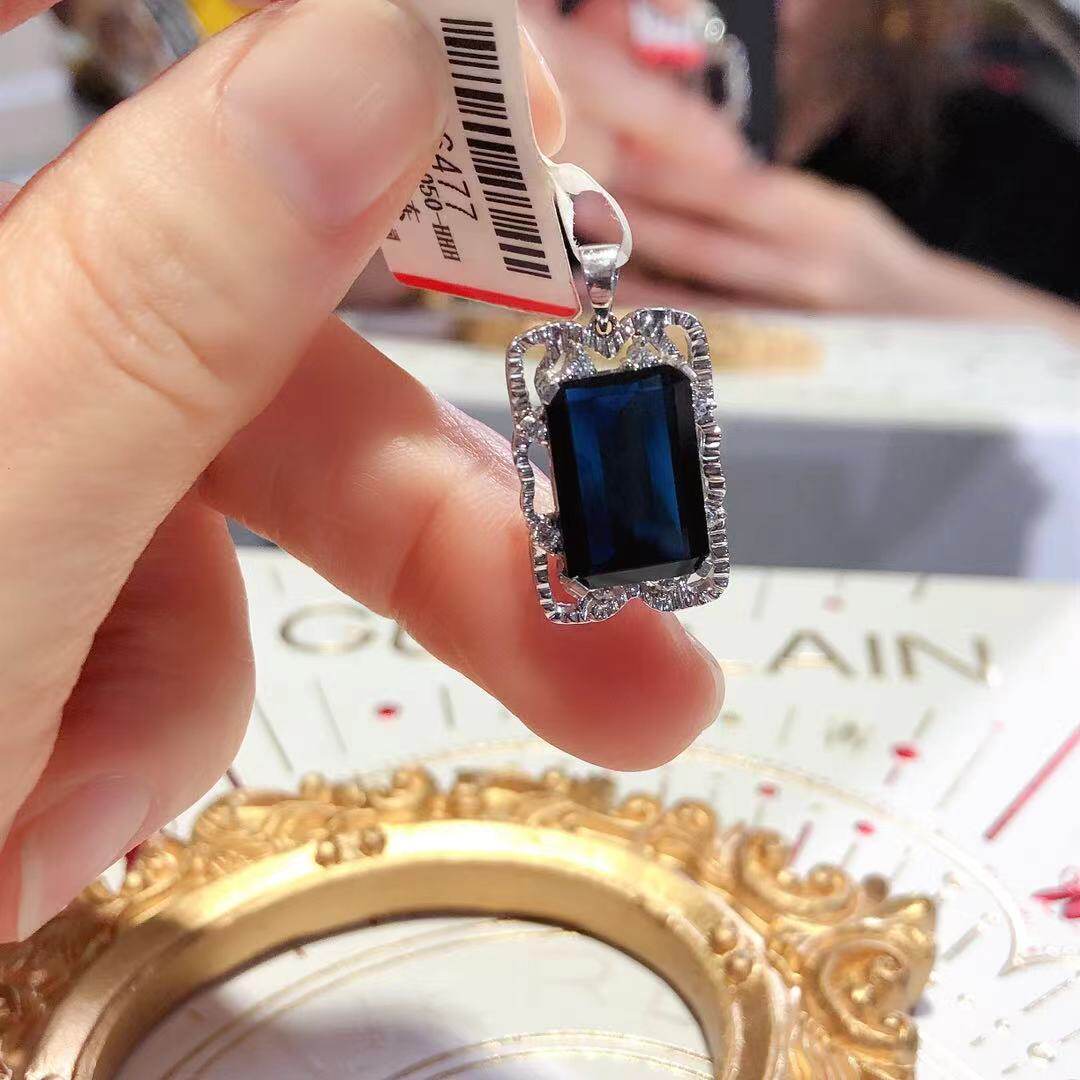 Платиновая инкрустация камня, квадратная сапфировая подвеска, белое золото 18 карат, (в наличии на складе)