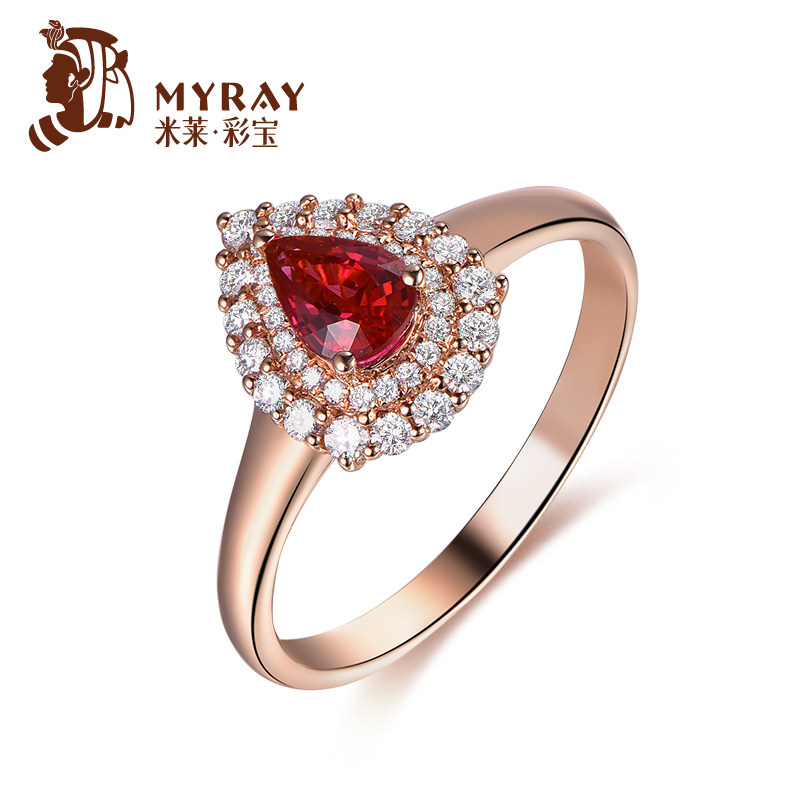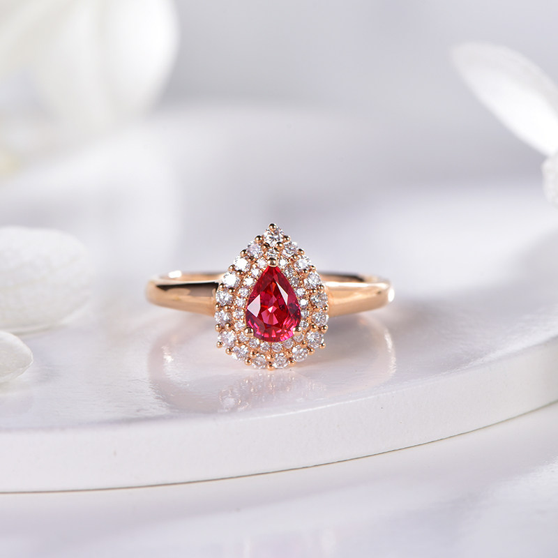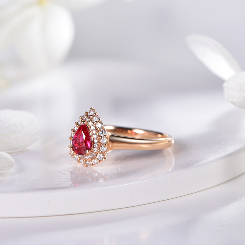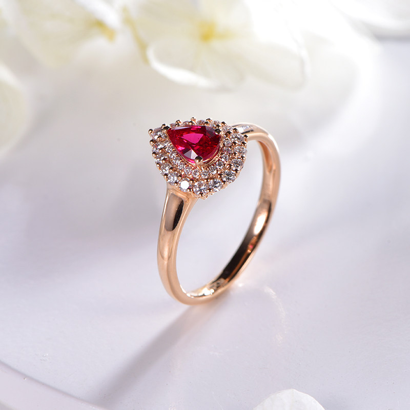 Ювелирное украшение, натуральная рубиновая подвеска, бриллиантовая инкрустация камня, 0.58 карат, женский стиль, золото 750 пробы, делается под заказ