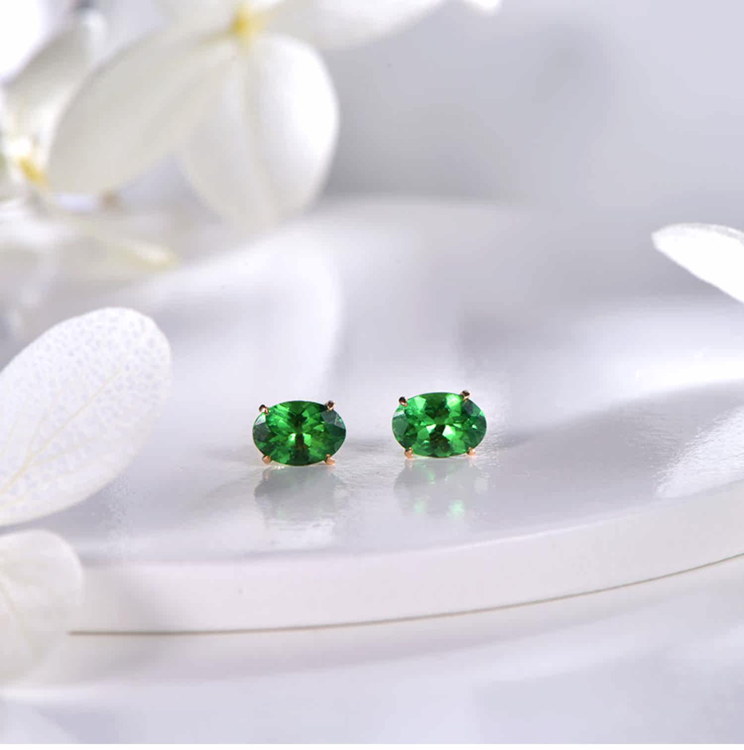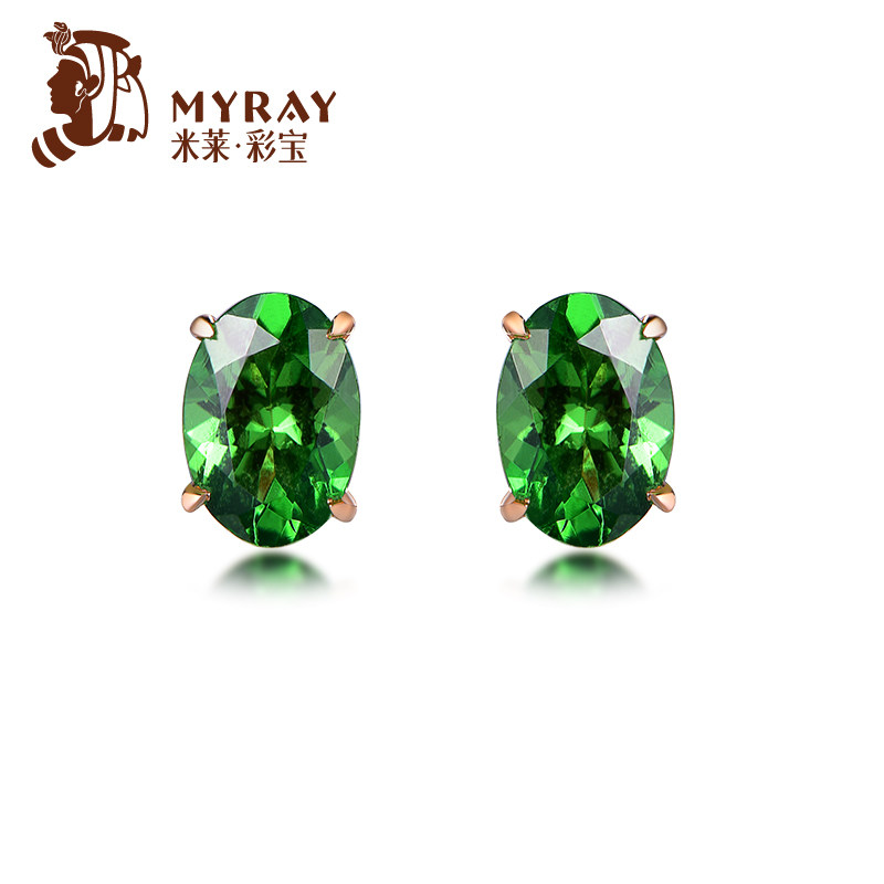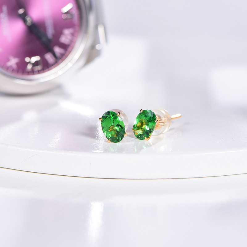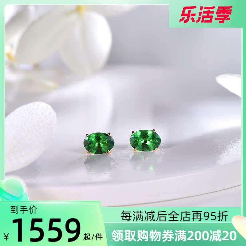 Натуральное ювелирное украшение, зеленые серьги из граната, инкрустация камня, 1 карат, золото 750 пробы, делается под заказ