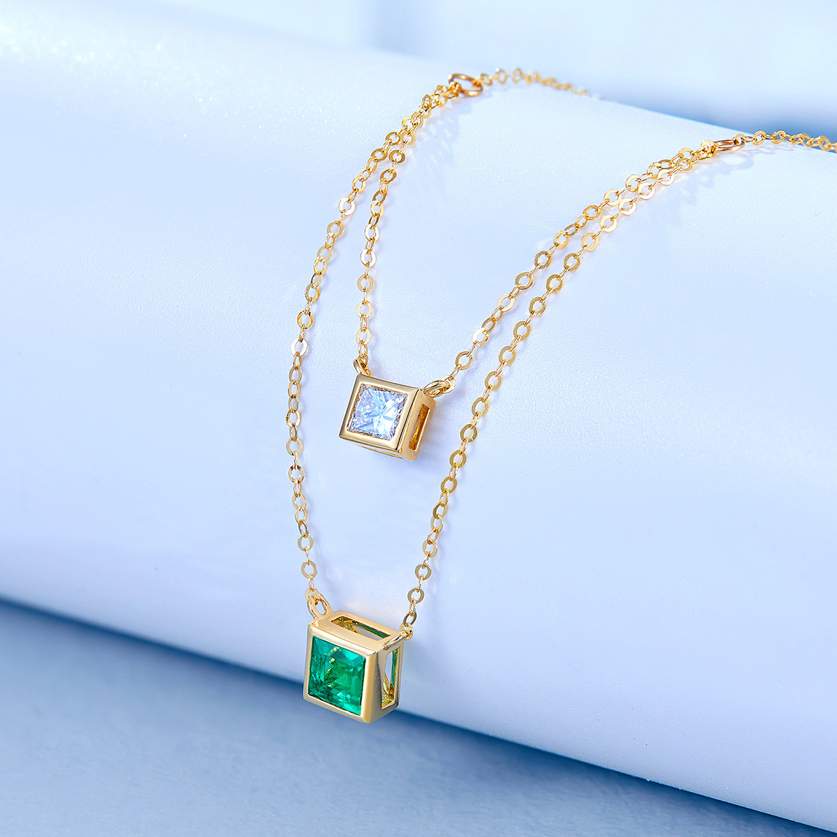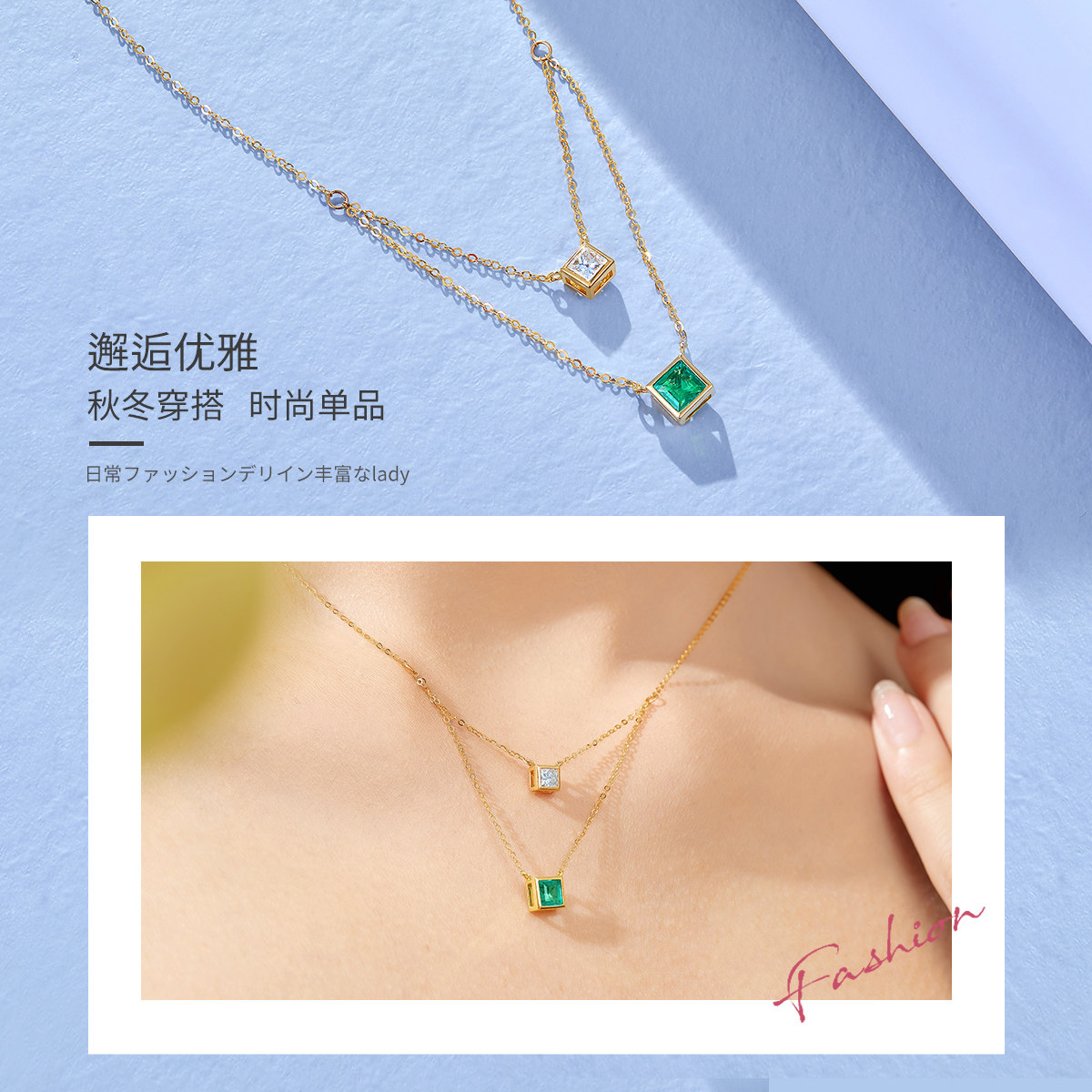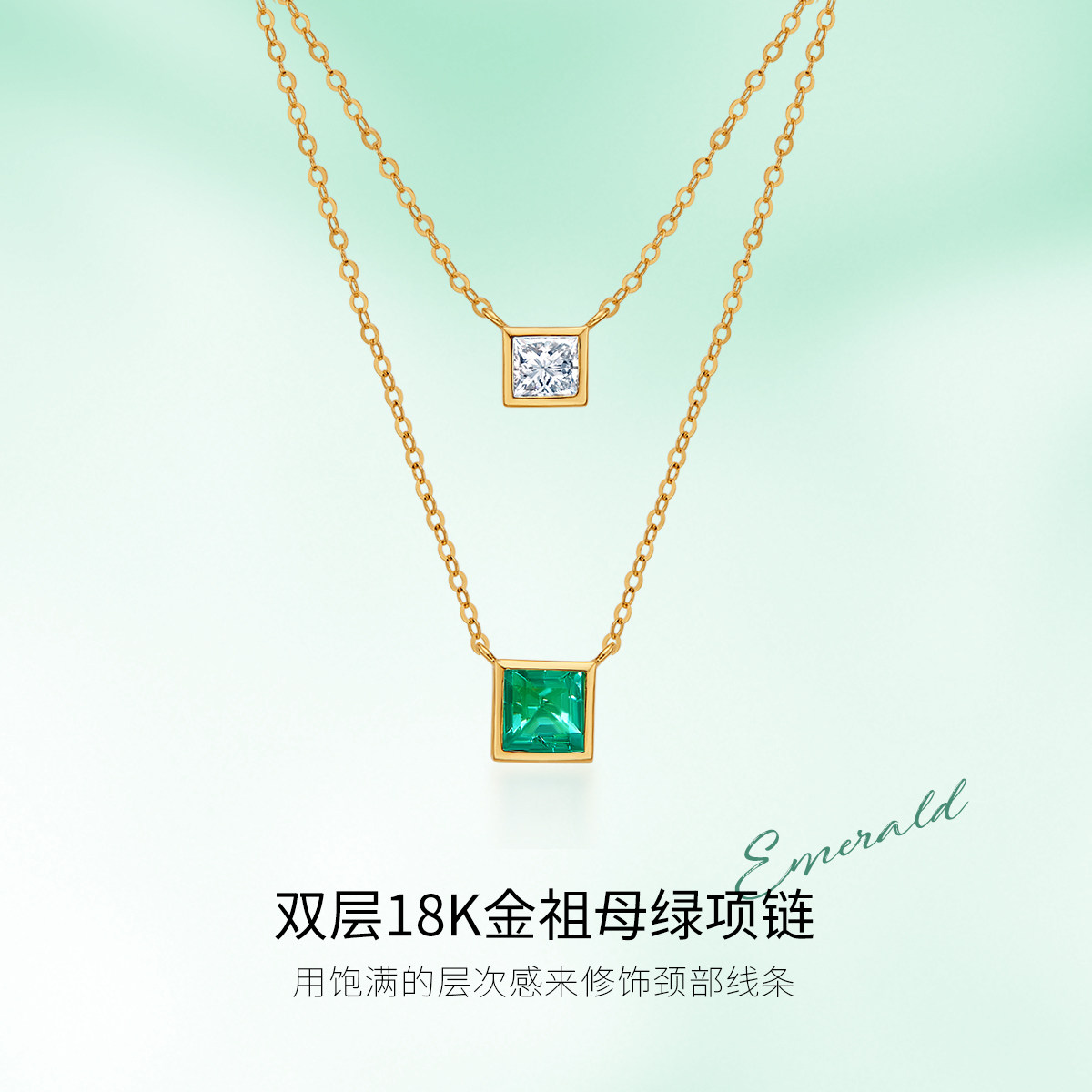 Подвеска изумруд, бриллиантовая цепочка до ключиц, золото 750 пробы, легкий роскошный стиль