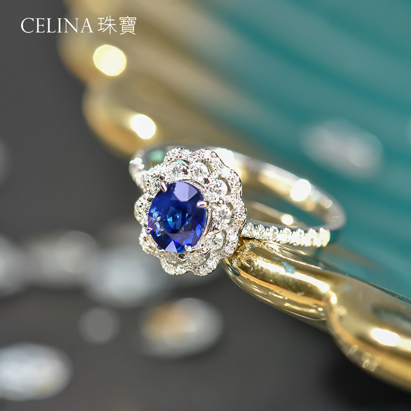 Натуральное ювелирное украшение, королевское сапфировое кольцо с камнем, золото 750 пробы, с драгоценным камнем