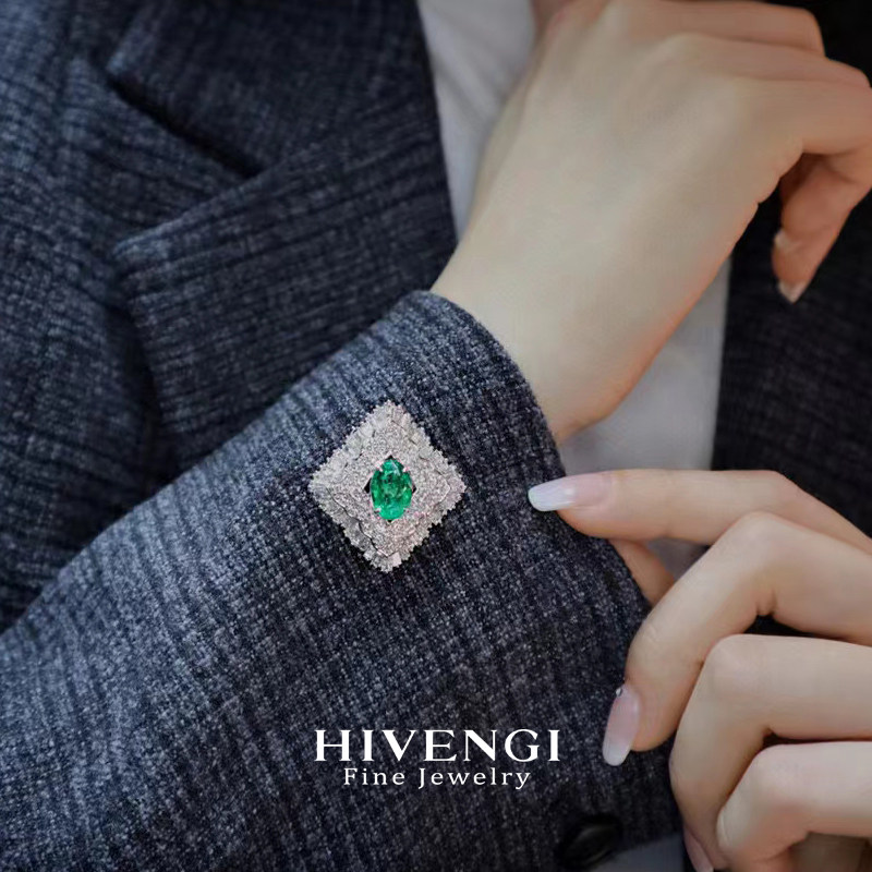 Натуральное ювелирное украшение, брошь, платиновая бриллиантовая инкрустация камня, браслет, подвеска, белое золото 18 карат