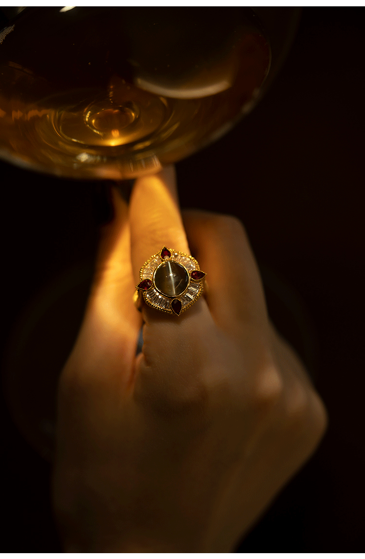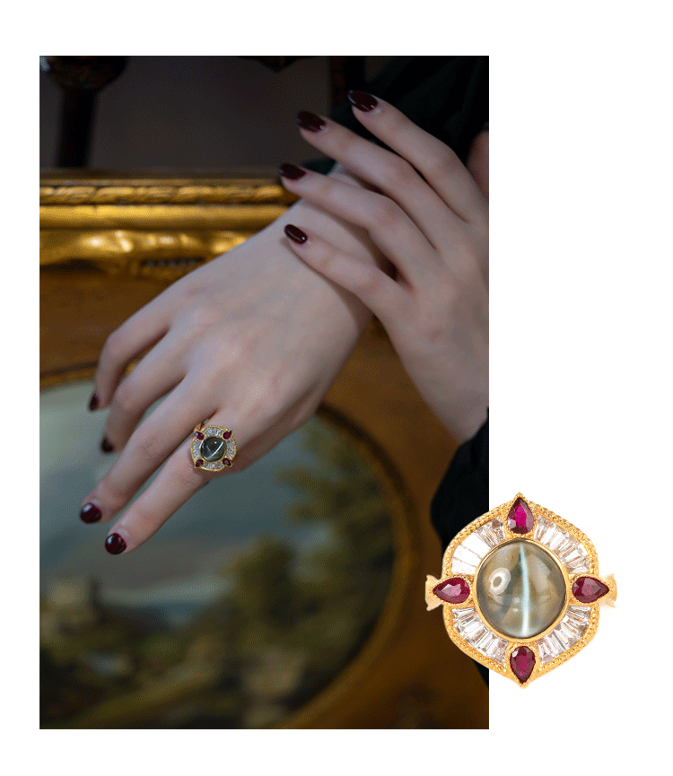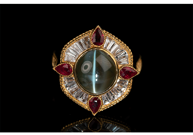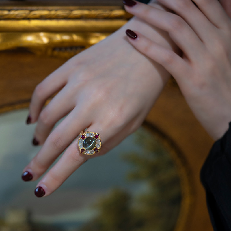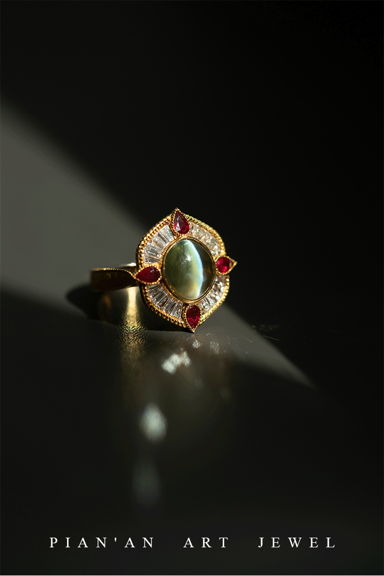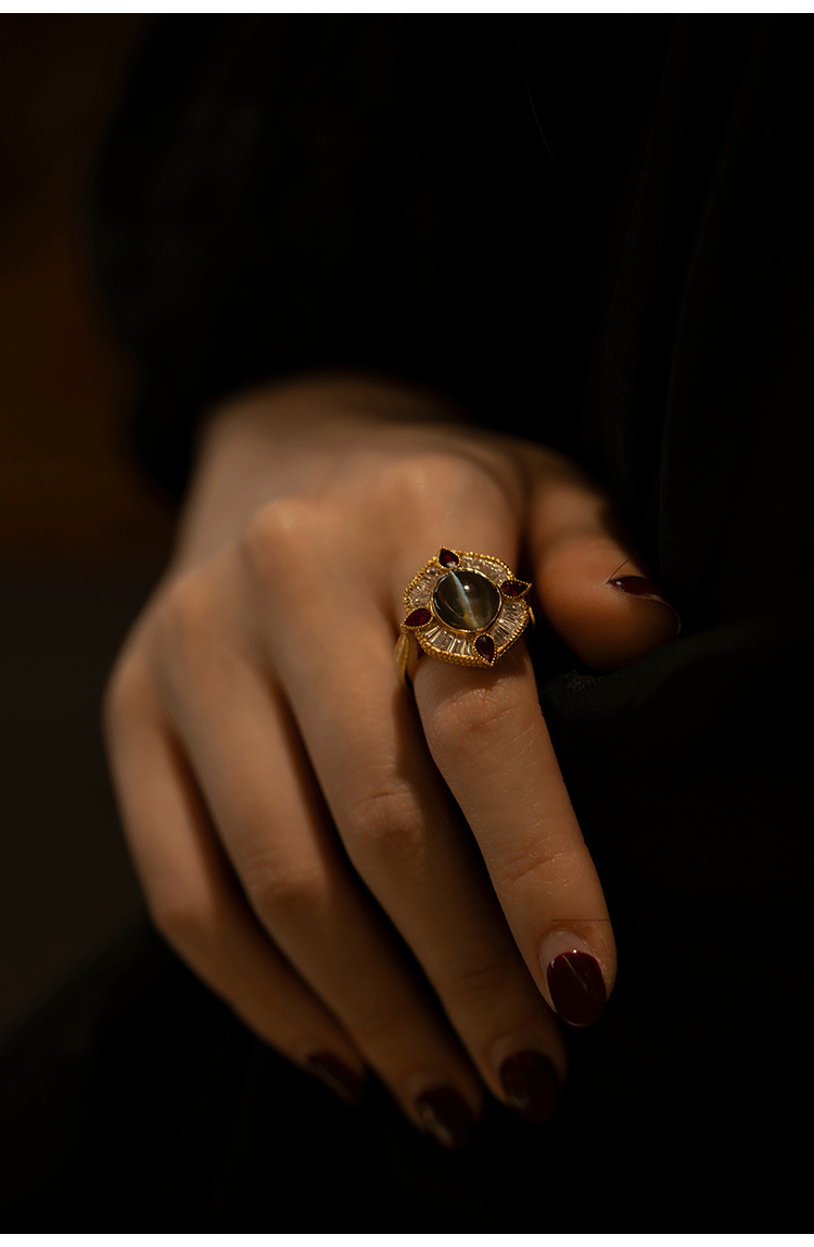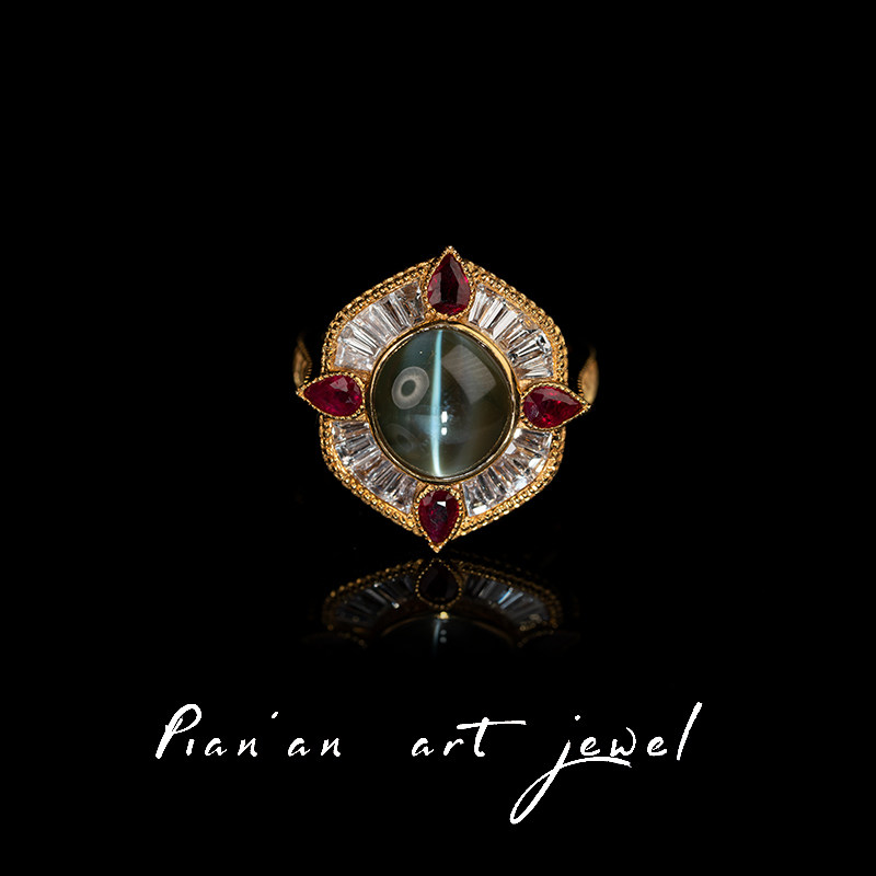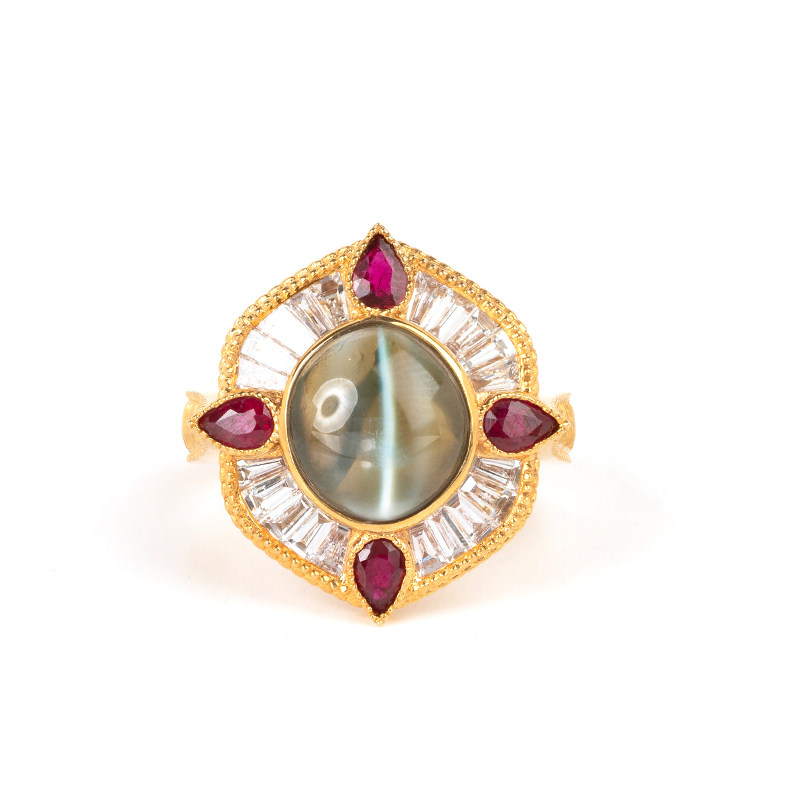 Кольцо с камнем, рубиновая высококачественная инкрустация камня, кошачий глаз, золото 750 пробы