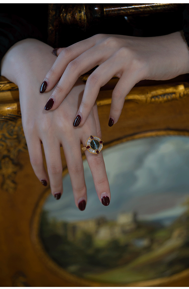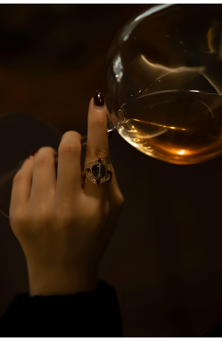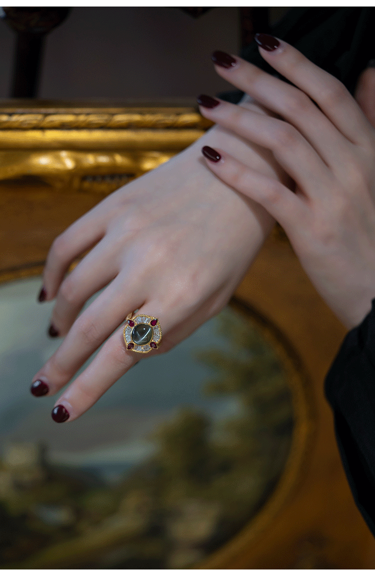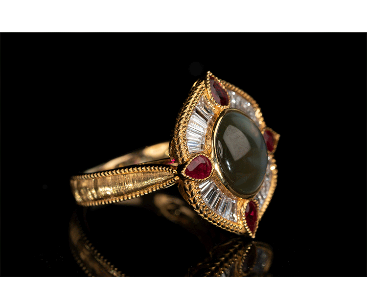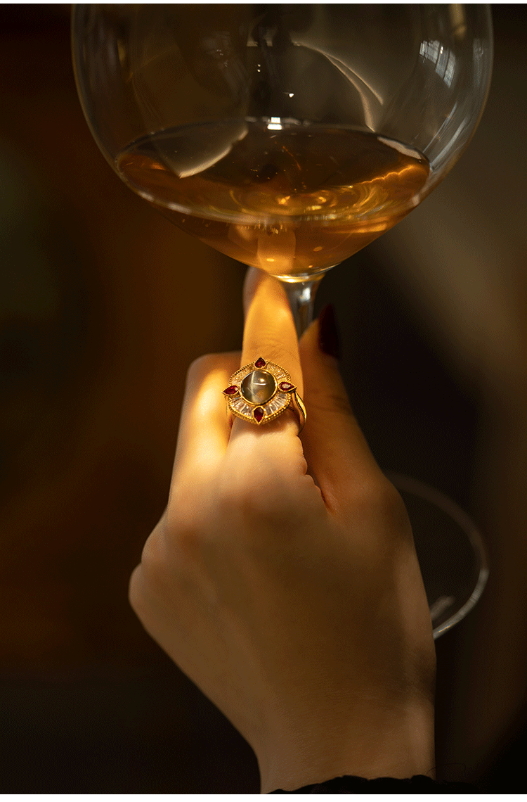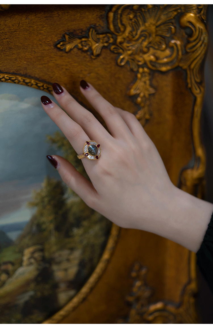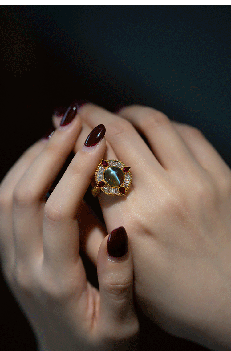 Кольцо с камнем, рубиновая высококачественная инкрустация камня, кошачий глаз, золото 750 пробы