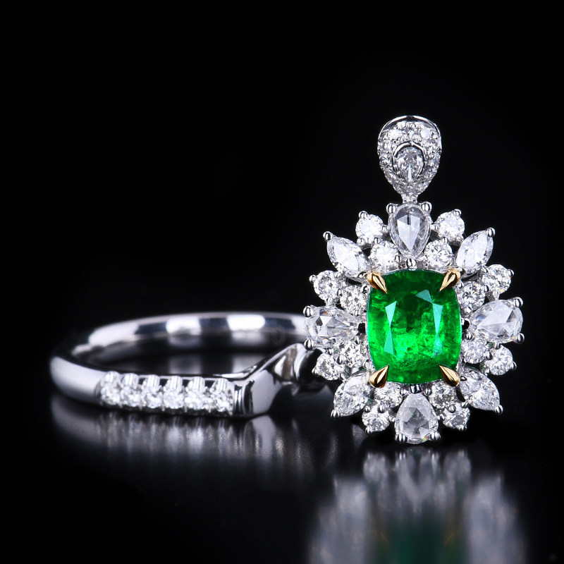 Сертификат гильдии 0,92CT Wharton Green Emerald Ring 18k Gold Mosaic Diamond 99787
