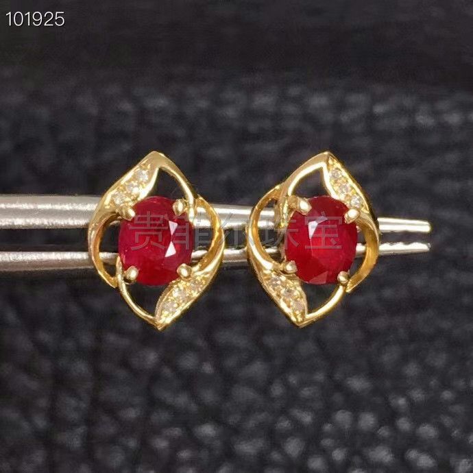 - Рубиновые серьги, золото 750 пробы