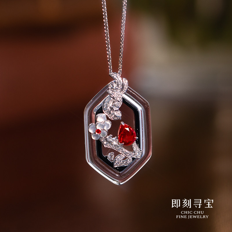 Charlotte tilbury, платиновая рубиновая бриллиантовая подвеска, белое золото 18 карат