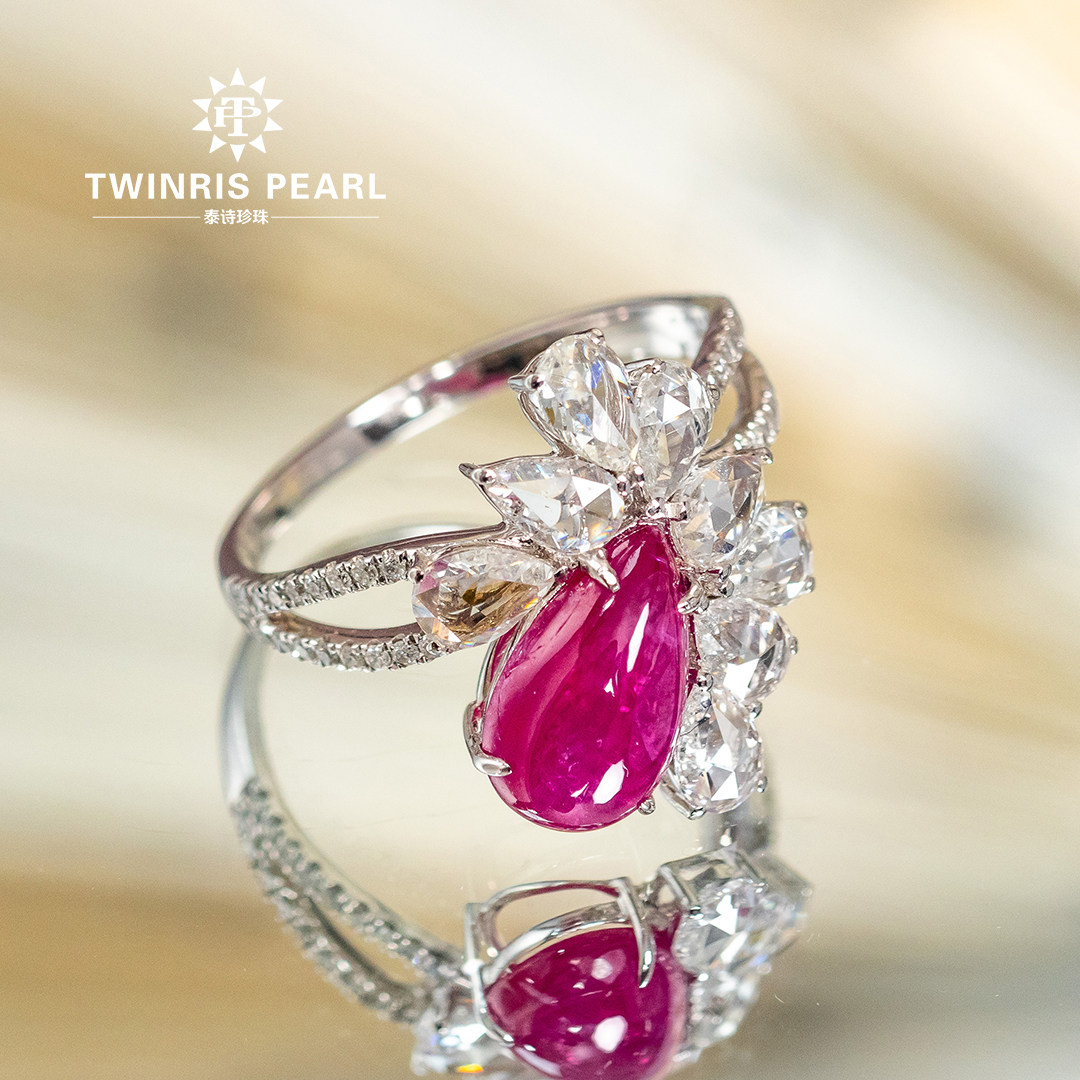 Бриллиантовая натуральная рубиновая инкрустация камня из жемчуга, дизайнерское элегантное ювелирное украшение в форме капли, кольцо, золото 750 пробы