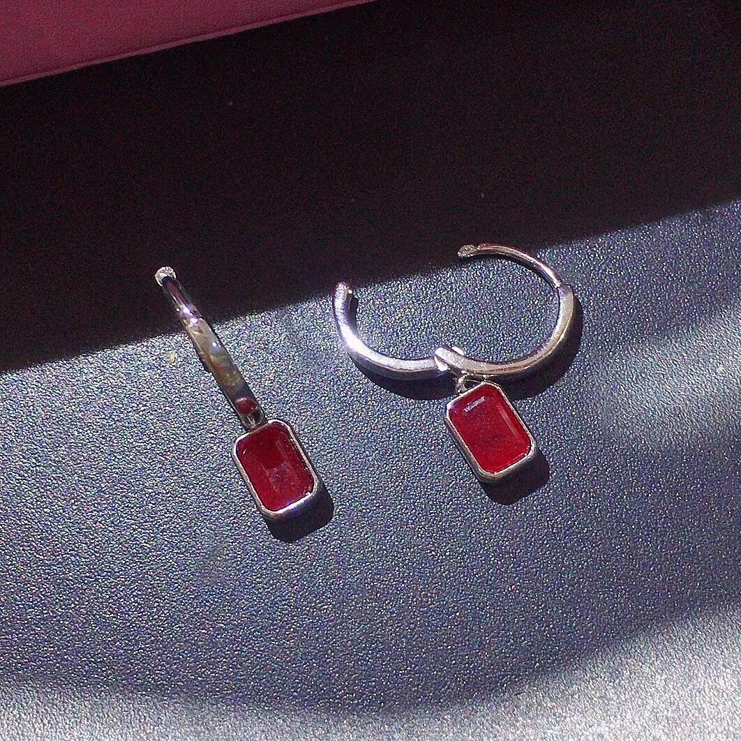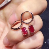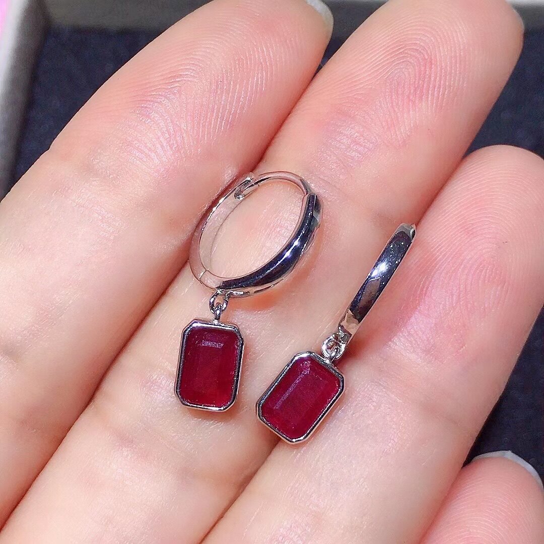 Натуральные рубиновые серьги, инкрустация камня, цвет, серебро 925 пробы