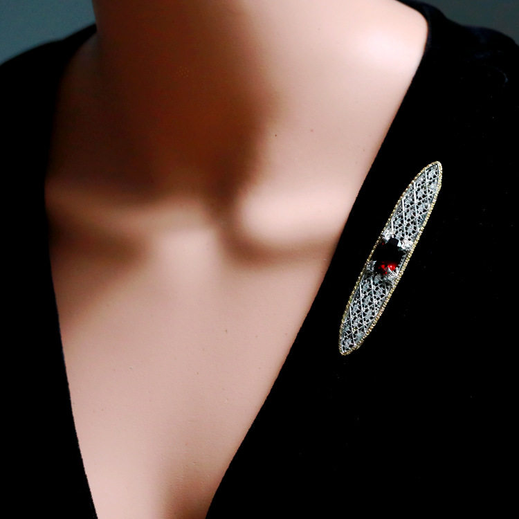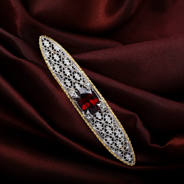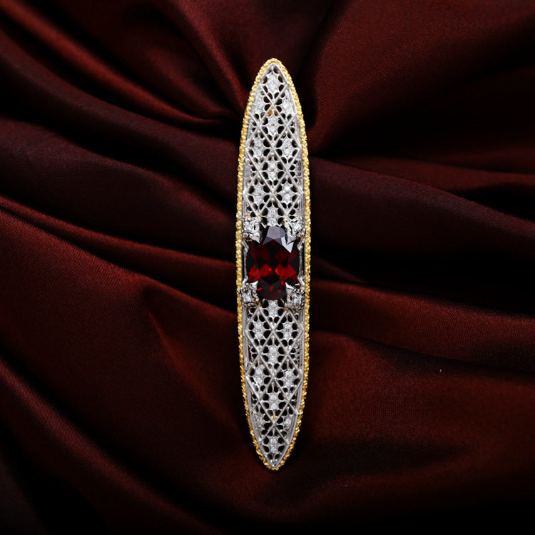 存臻 Антикварная платиновая брошь из граната, подвеска, 6.96 карат, золото 750 пробы