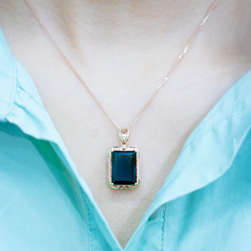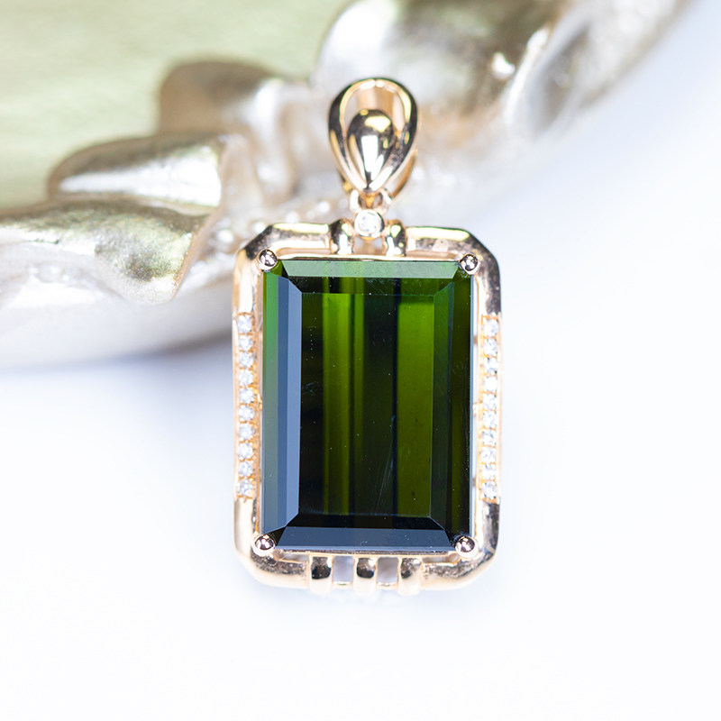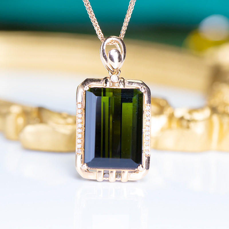 Charlotte tilbury, элитная вместительная и большая квадратная натуральная турмалиновая подвеска, бриллиантовая инкрустация камня, 18 карат