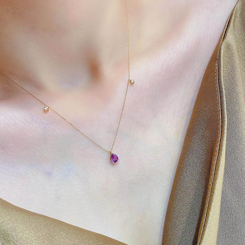 宝创集 Натуральная сапфировая бриллиантовая модная цепочка до ключиц с кисточками, золото 750 пробы, 0.7 карат