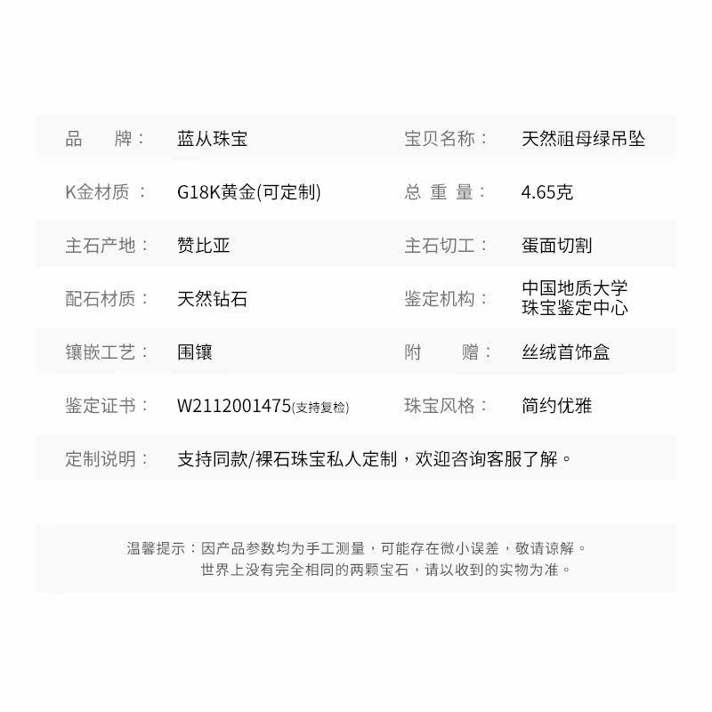 | Цвет: | [Произведено Lan Cong] Изумрудный кулон, Информация о продукте |