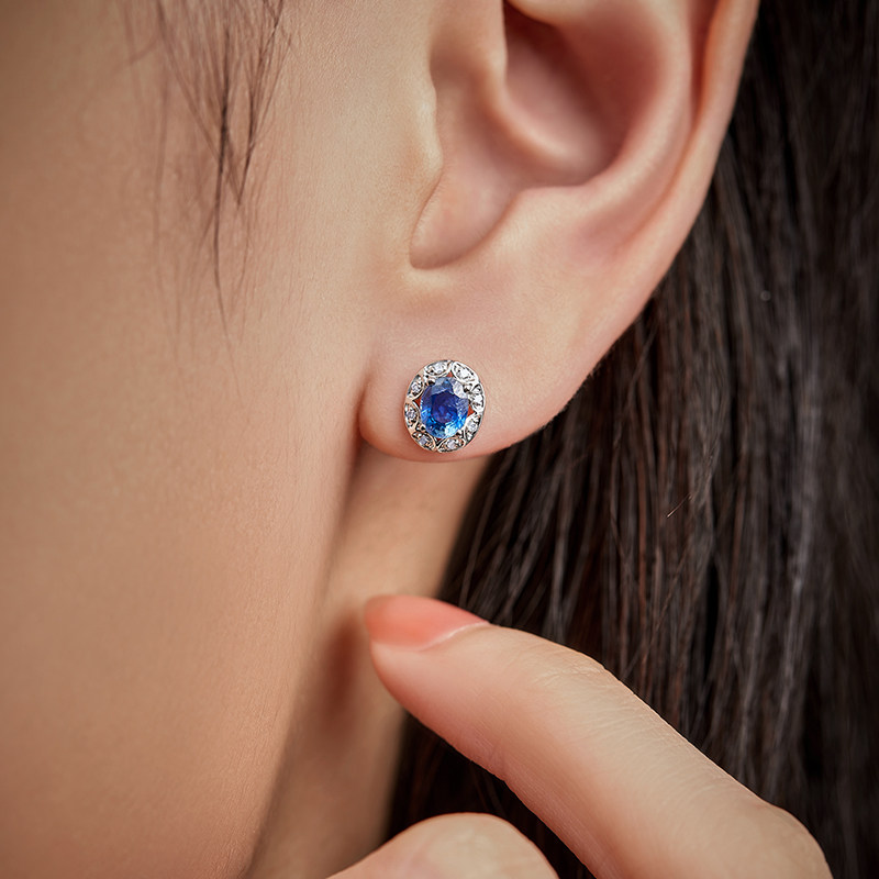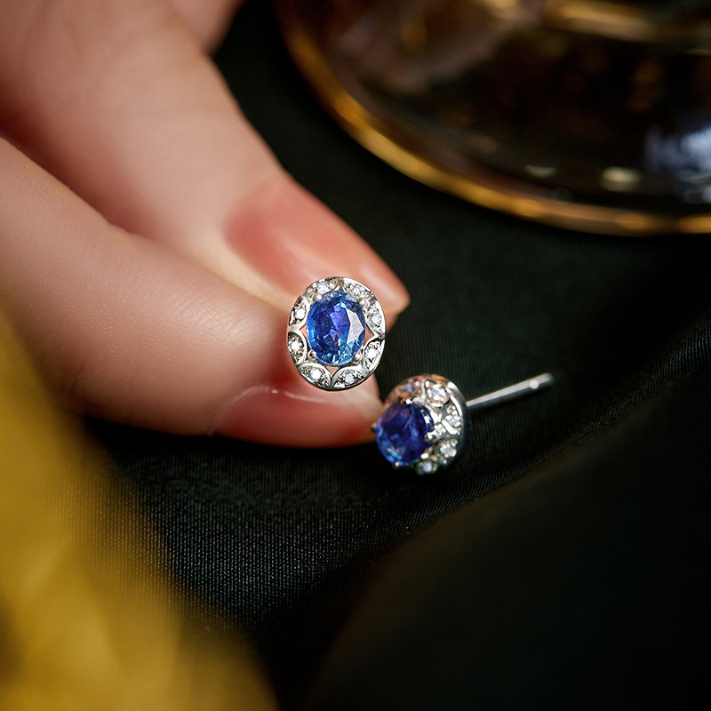 Сапфировые модные серьги, золото 18 карат, простой и элегантный дизайн, женский стиль